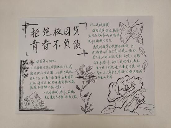 通过此次活动,让同学们对校园贷诈骗有了更倾心的认知,在日常生活中也会不断提高警惕,积极提醒周边的同学亲人谨防电信网络诈骗。此次反诈宣传手抄报活动进一步提高了同学们防范校园贷诈骗的意识与能力,同时也提醒了同学们在日常生活中不贪图小便宜、不轻信他人、不轻易泄露个人信息等,守护好切身利益,共同在晴朗的校园环境下健康成长!