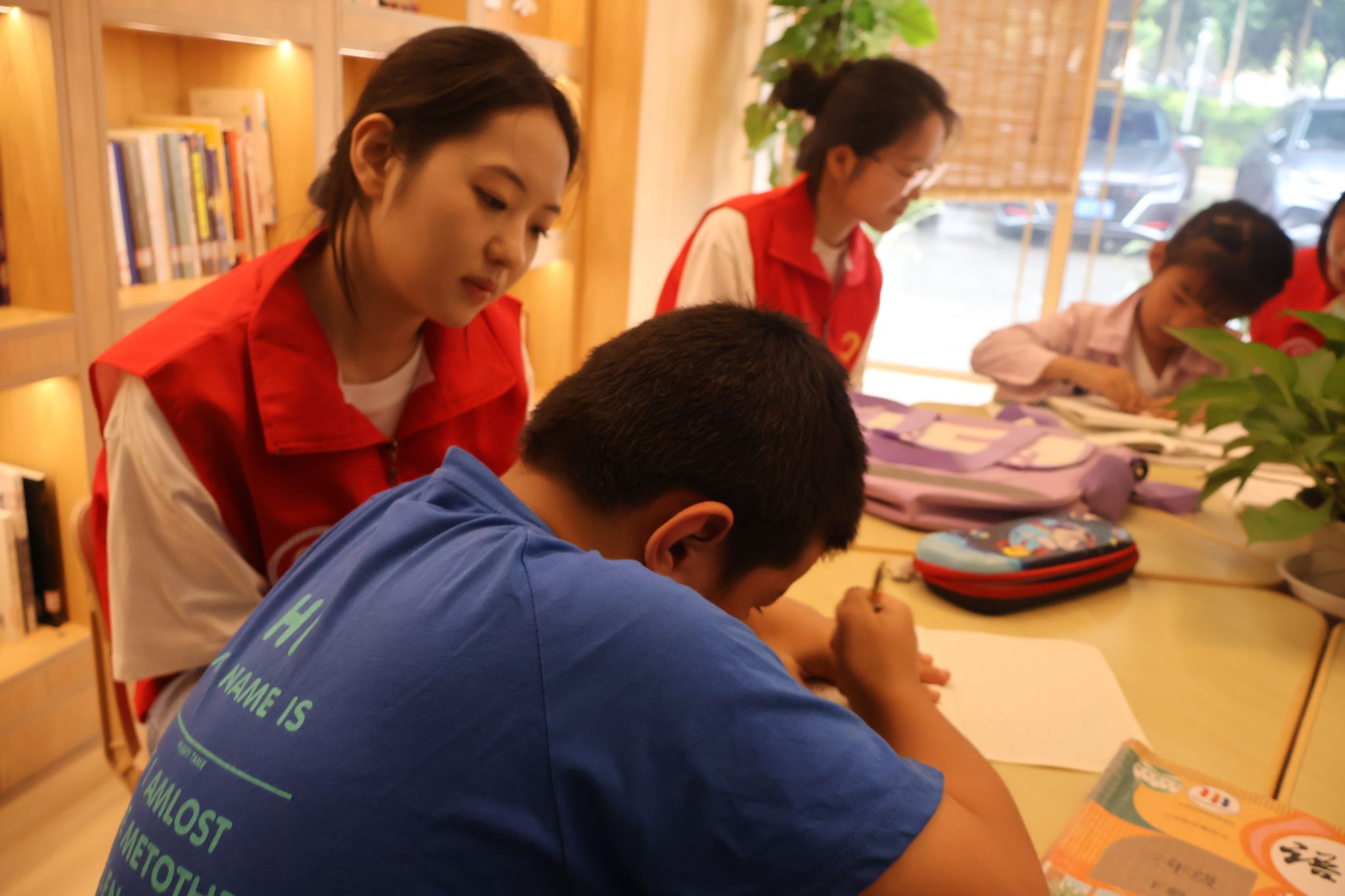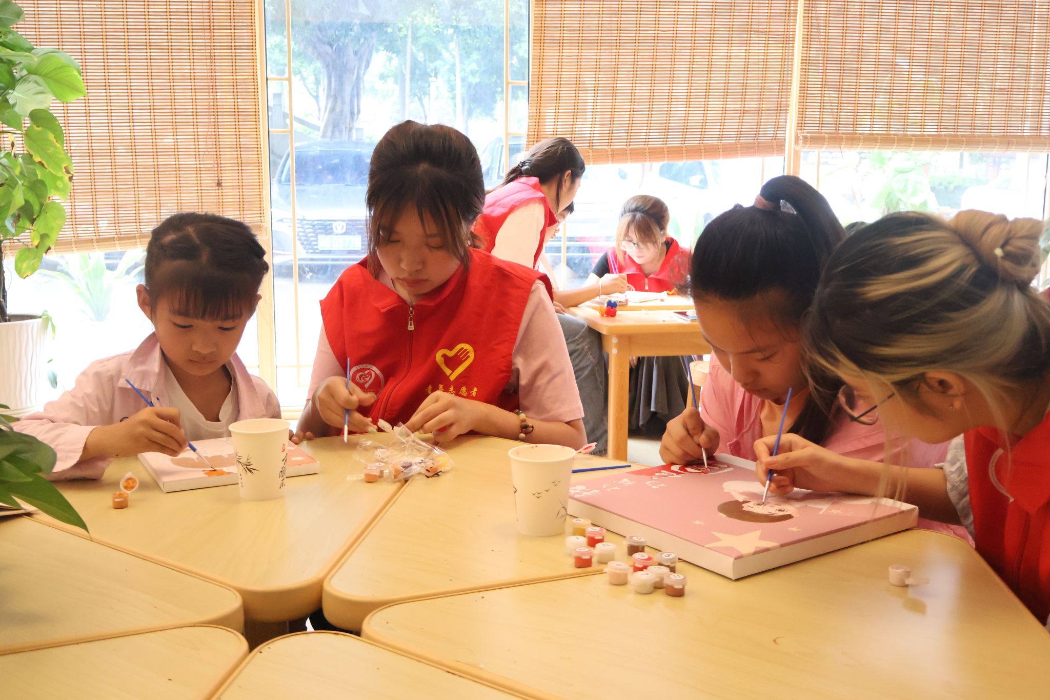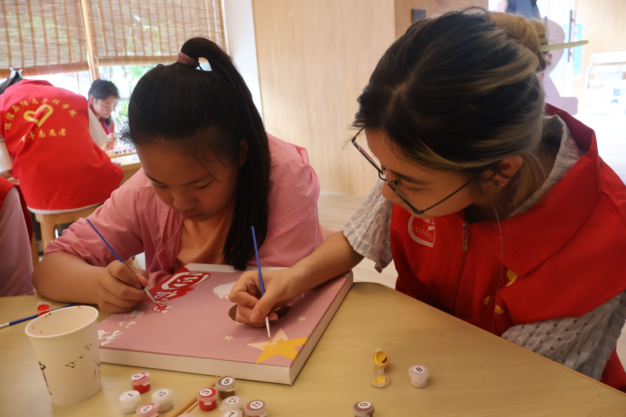 活动现场,志愿者们以寓教于乐的方式,耐心地辅导小朋友们完成作业,与他们一起探讨知识,为他们解答疑惑。随后,志愿者和小朋友共同参与了五四主题DIY绘画环节,小朋友纷纷拿起画笔,在画本上尽情挥洒,用斑斓的色彩描绘出他们心中的五四梦想,一幅幅充满童真和创意的画作,展现了他们对五四精神的独特理解和感悟。此外,志愿者们在活动中为小朋友们提供指导,并给予了鼓励和支持,让他们在创作中感受到了艺术的魅力和五四精神的力量。