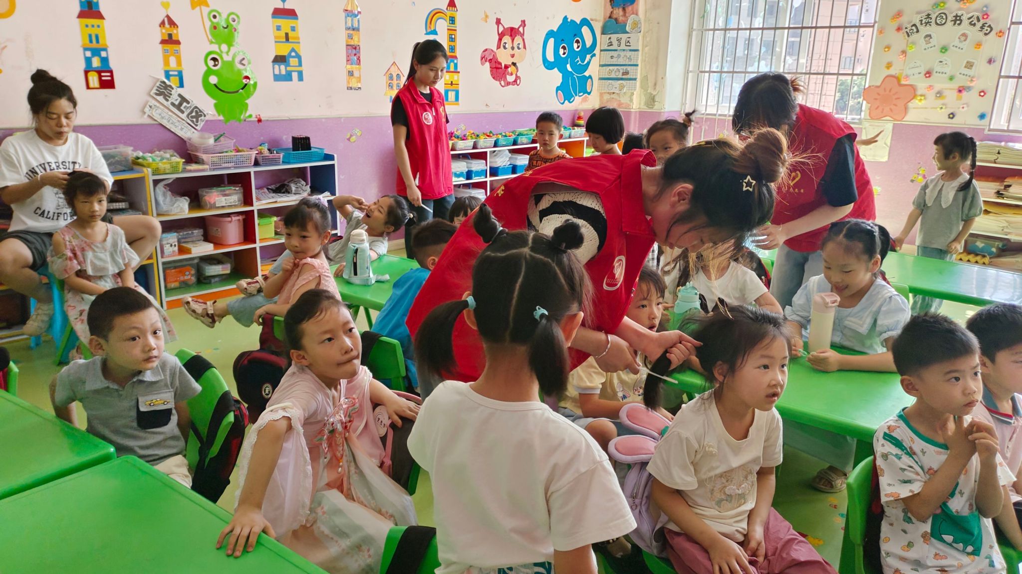 活动伊始,志愿者们细致入微地为每位小朋友梳理着发丝,确保每个宝贝都以最灿烂的笑容迎接这一奇妙时刻。随后,志愿者们辅助幼儿园老师为孩子们加餐,让他们在享受美食的同时,感受到如家般的温暖与呵护。