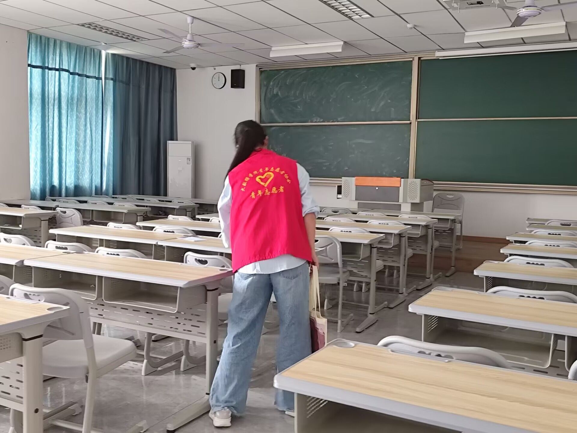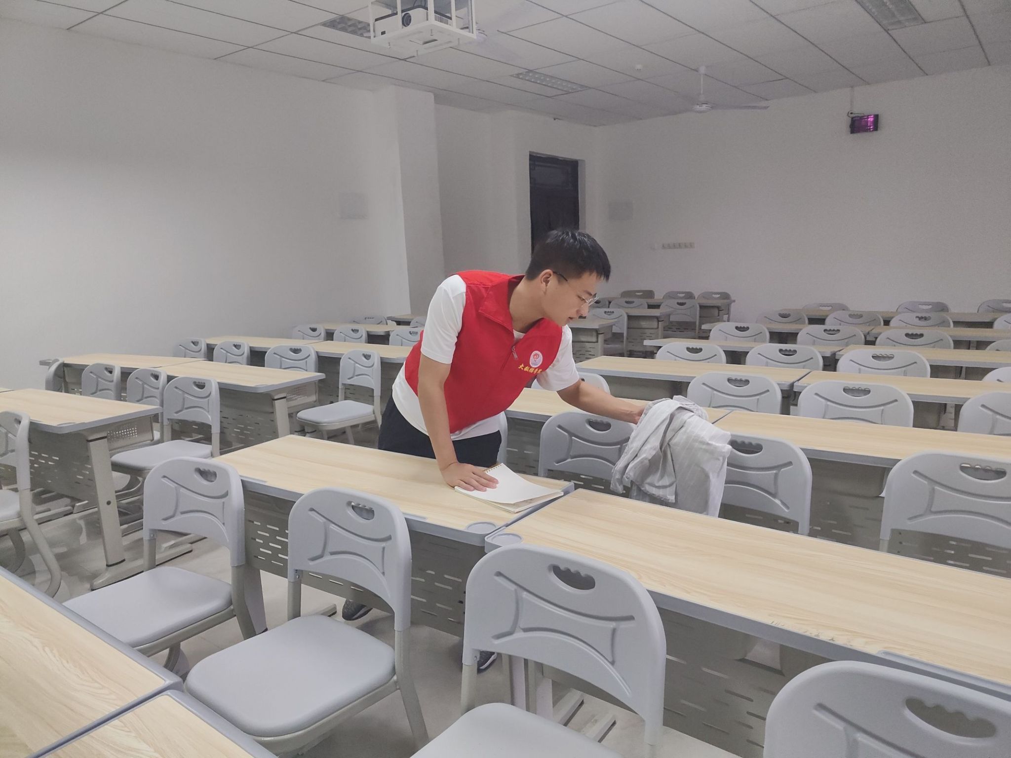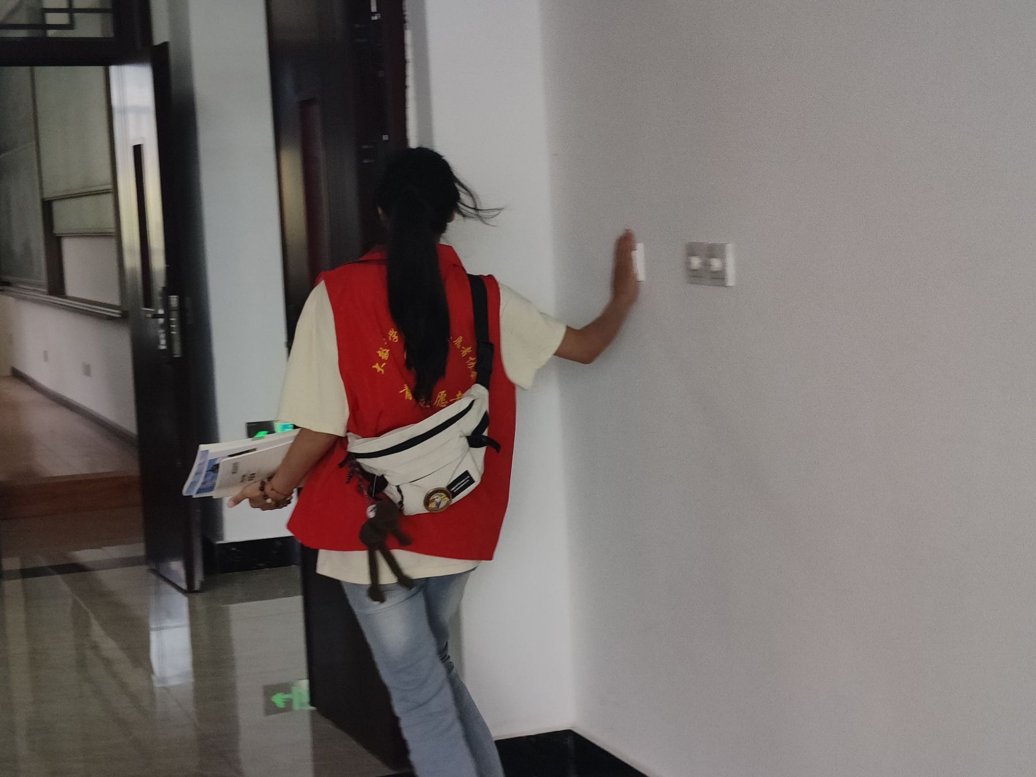 巡楼工作开始之前,支队成员先熟悉自己的详细的分工。行者楼、仁者楼、勇者楼、智者楼、勤者楼根据区域大小的不同分配不同的人数。每个区域的小分队还需要派一名同学拿取志愿者马甲和印有支队图案的布袋,方便失物的收取和运送。一切准备就绪后,支队成员们弯腰低头认真仔细的查看每一个桌兜,保证不错过任何同学们遗留的物品。