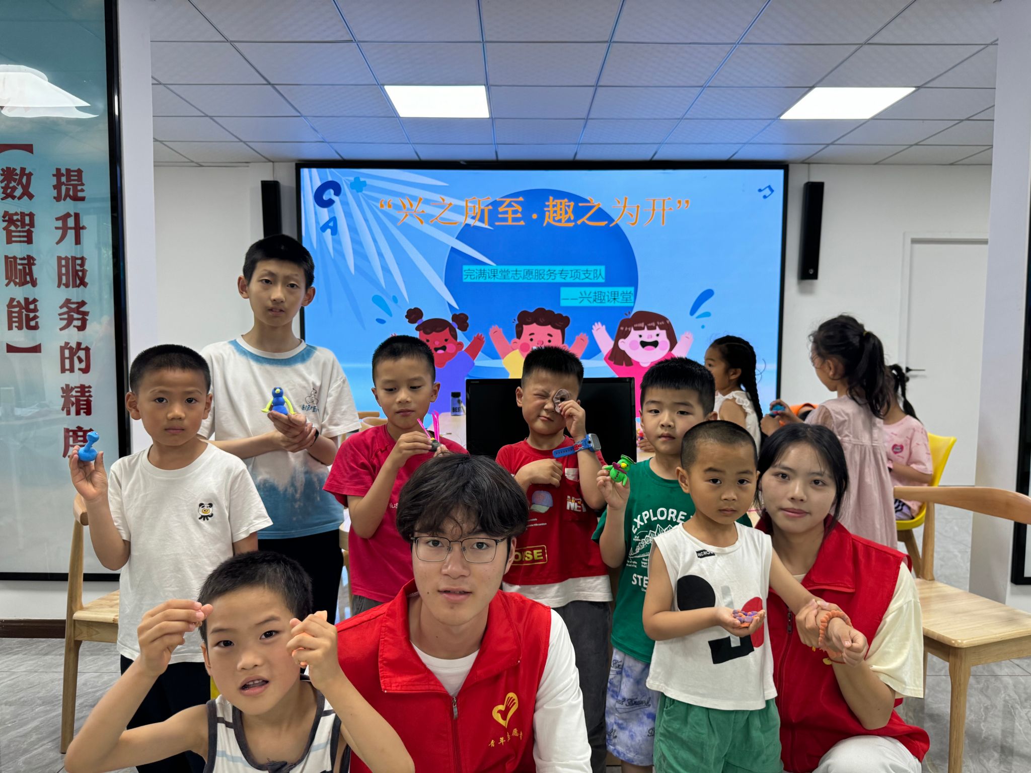 兴趣爱好活动是学校课堂教学的延伸性活动,是进一步深化教育教学改革,全面实施、推进素质教育的一个重要体现。为培养孩子们的审美能力、动手能力以及创新精神,完满课堂志愿服务专项支队于2024年5月25日下午15:30在新街子社区开展了“兴之所至·趣之为开”主题志愿服务活动。此活动旨在通过兴趣探索和兴趣发现的活动项目,利用音乐、艺术、创意兴趣的小组活动,让孩子们探索自己的兴趣爱好,去实践、去探究,促进全面发展。