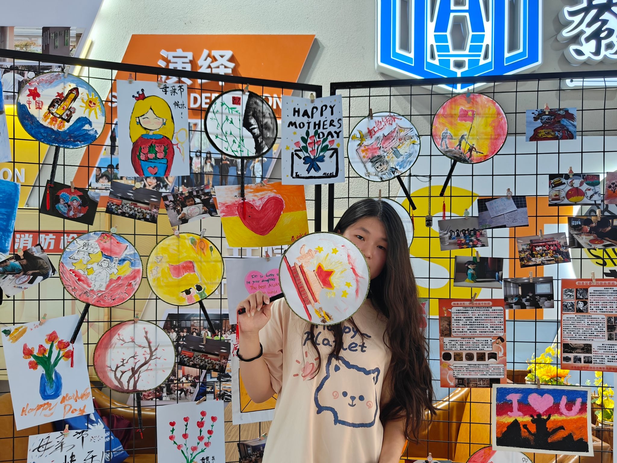 桌面上,精心陈列着过往绘画活动的优秀作品,一幅幅精彩绝伦的作品犹如时光的画廊,让人流连忘返。参与者们在这些艺术品前驻足,目光中流露出欣赏与喜爱,他们挑选出心仪之作,与其留下合影,将这一刹那的美好与感动定格成永恒。这不仅是对同学们创作成果的肯定,也是对他们艺术追求的鼓励。在相机的记录下,同学们与画作共同构成了一幅幅美丽的画面,这些照片将成为他们宝贵的回忆。