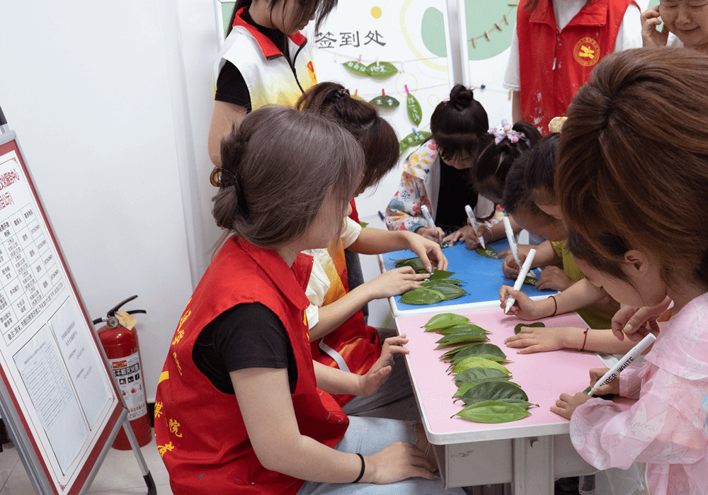 欢声笑语映童真,秩序井然展风采。随着仪式的开始,活动流程有条不紊地展开。在活动第一阶段,志愿者们组织了一场别出心裁的签到活动。他们采用新颖的树叶签到方式,每位到场的小朋友和家长都可以在树叶上签上自己的名字,并将树叶粘贴在签到墙上。这种独特的签到方式不仅增添了活动的趣味性,也让参与者们感受到了大自然的魅力。在签到的过程中,志愿者们还与孩子们亲切交流,询问他们的学习情况和兴趣爱好,为接下来的活动营造了轻松愉快的氛围。