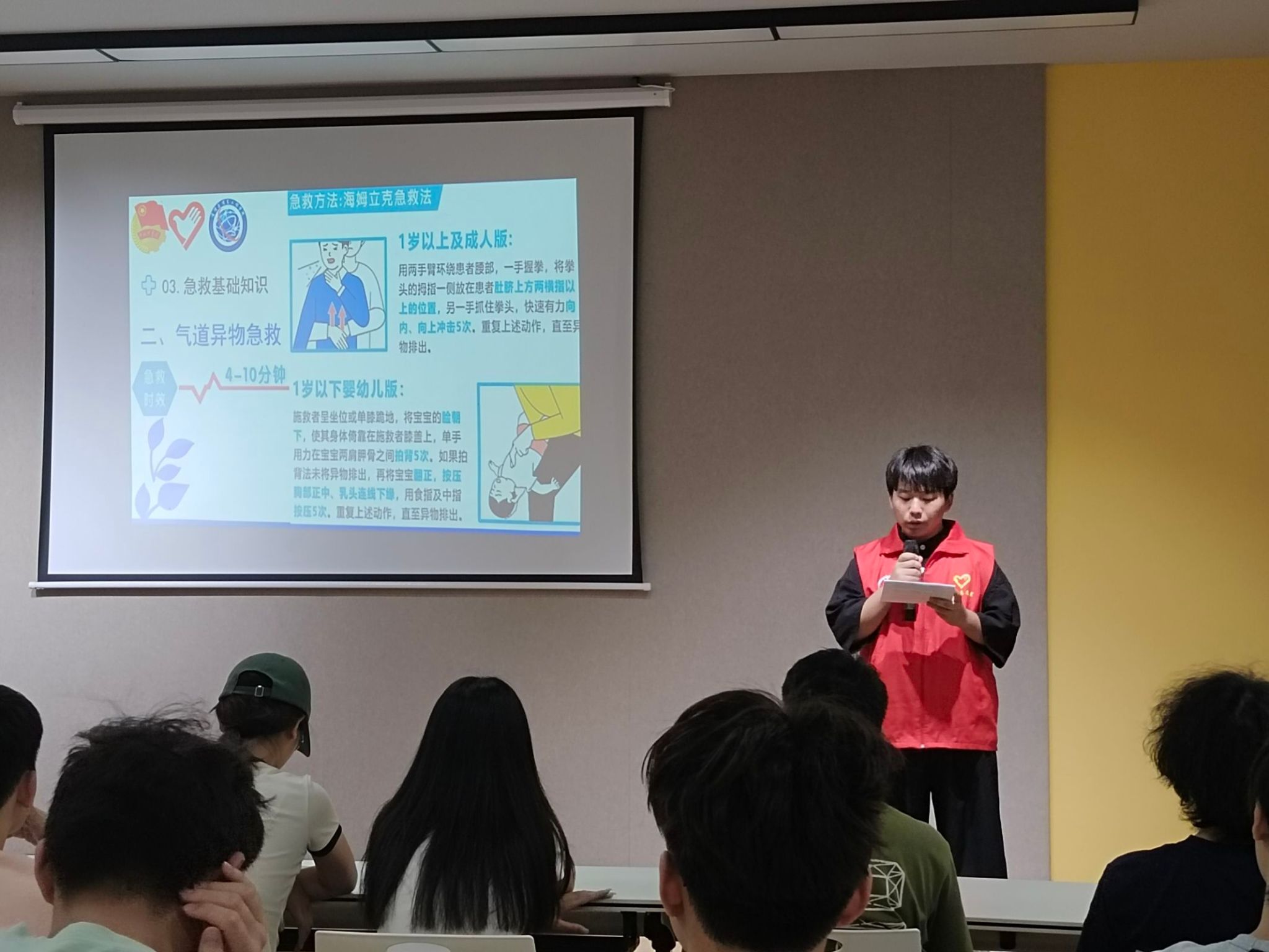 随着夏日的脚步逐渐逼近,高温与酷暑成为这个季节的主旋律。为了增强志愿者在炎炎夏日中的急救意识,提高自救与互救能力。为此“伐木累”通信学院志愿者培训志愿服务专项支队于5月31日来到瀛溪书院语者演讲培训室为花果“4+N”志愿者先锋锻造计划基础班的同学讲解相关知识,旨在提升志愿者们在高温季节下的急救知识水平和应对能力,确保他们在参与志愿服务过程中能够更好地保护自己和他人。此次活动参与人数100余人,受益人数150余人。