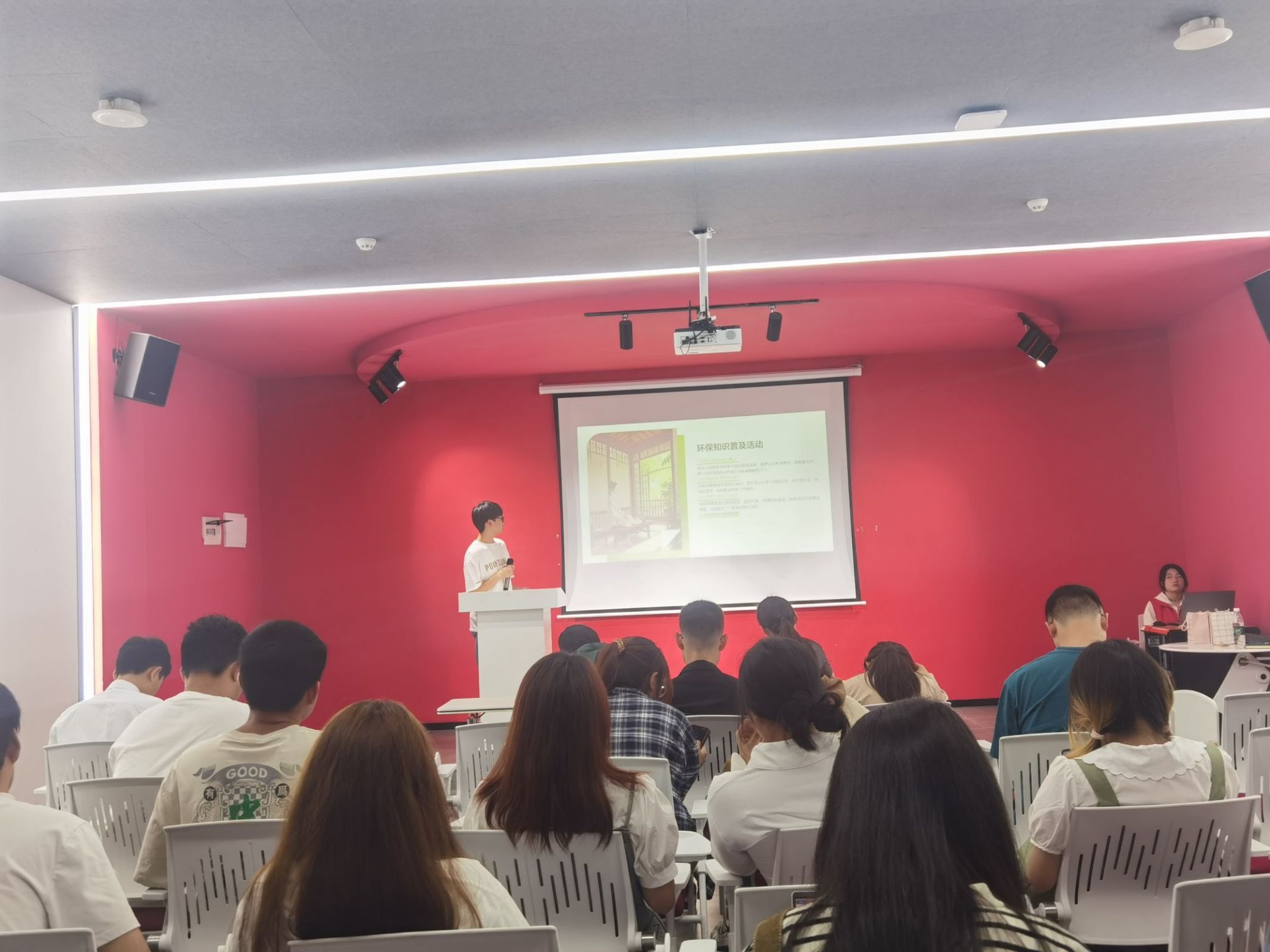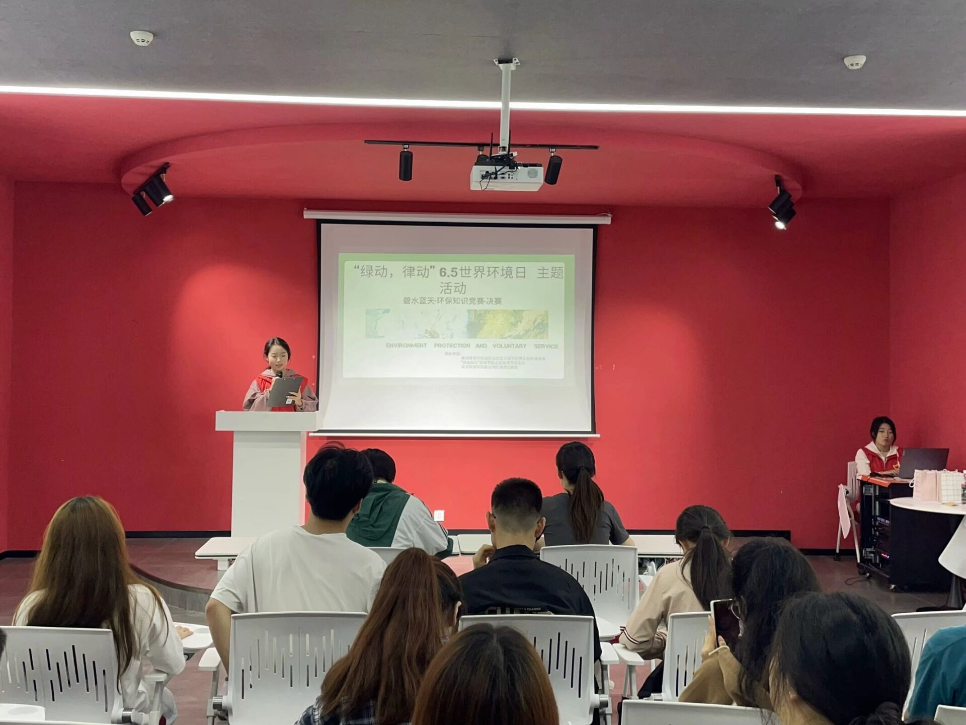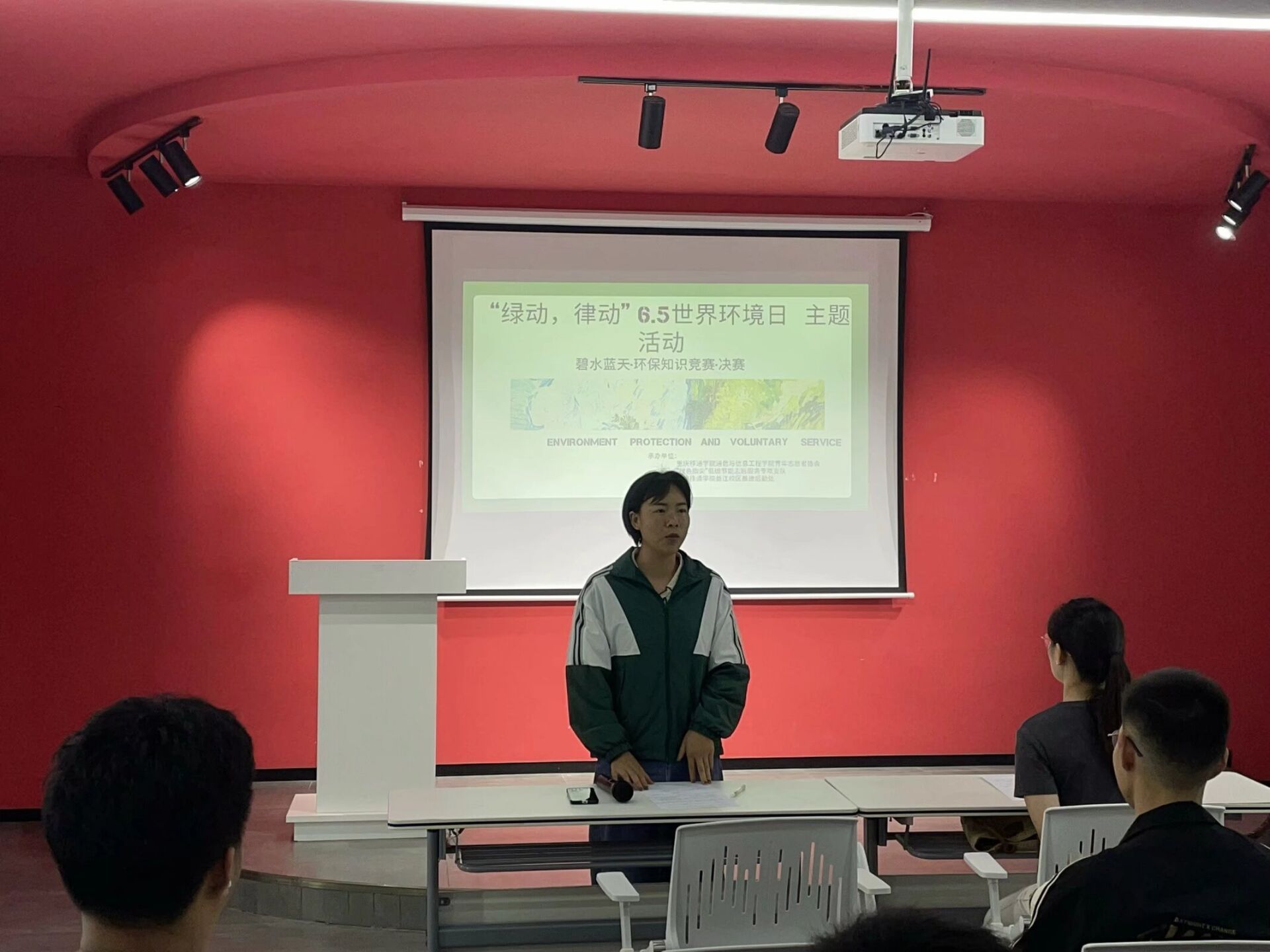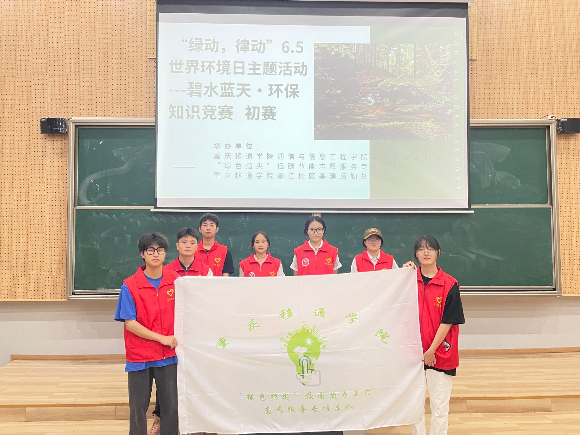 在六月的盛夏时节下,阳光炽热而耀眼,微风中带着一丝丝青草和鲜花的香气。在这个充满活力的季节里,通信与信息工程学院“绿色指尖”低碳节能志愿服务专项支队联合重庆移通学院基建后勤处于6月2日19点在玉棠书院—Talk King演讲中心举办了一场别开生面的“碧水蓝天·环保知识竞赛” 。本次活动以初期线下答题的方式,选出25人参与后期决赛答辩环节。这次活动不仅是对环保知识的一次深度探索,更是对同学们在环保领域以及志愿活动上更加深层次的理解,也是对大家团队协作精神的一次检验。本次活动参与人数50余人,受益人数80余人。