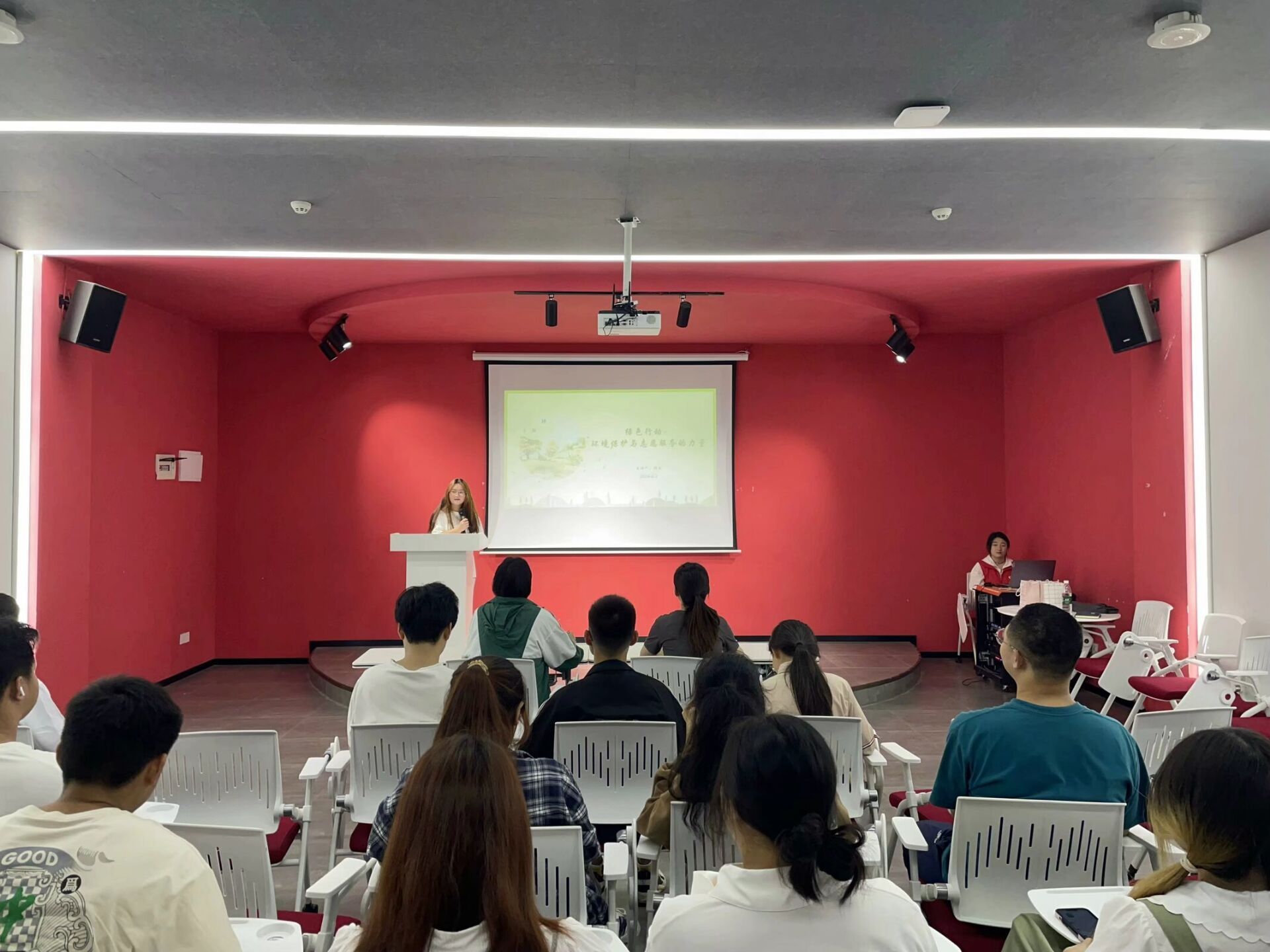 活动伊始,观众们热情高涨,期待着这场活动的到来。初赛阶段,同学们纷纷拿出各自的看家本领认真答题。他们或低头沉思,或奋笔疾书,每一道题都经过深思熟虑,每一选择都显得如此慎重,经过激烈的角逐,最终选拔出前25名选手进入决赛。决赛现场更是精彩纷呈,所有进入决赛的选手被随机分成5人一组,进行现场答辩。选手各自以微课形式演讲结合PPT展示,用生动的语言和实例,向观众和评委老师阐述了他们对环保知识及志愿服务的见解,有的选手从日常生活中的身边小事讲起,如垃圾分类、节约用水等,以小见大,展现了环保和志愿服务的重要性;有的选手则从全球视角出发,分析了当前环境问题的严峻形势,呼吁大家共同关注环保事业。全面体现了选手对环保知识的理解和应用能力,同时也考验了选手的演讲和表达能力。他们的演讲内容丰富多彩,观点新颖独特,赢得了观众们的阵阵掌声。