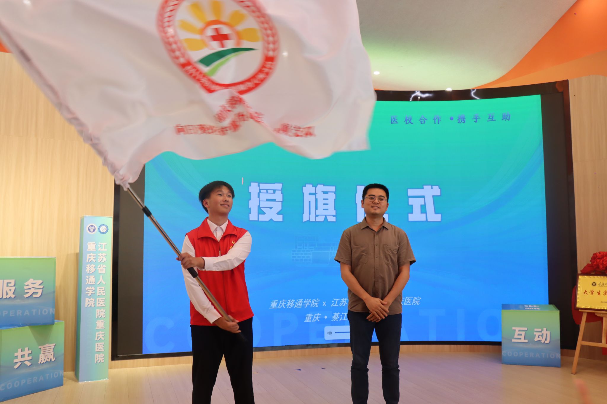 志愿服务专项支队是依托广泛建立的大学生社会实践基地,以开展专业、专项的志愿服务行动为目标的志愿者队伍,更是充分发挥学校志愿服务实践育人功能的重要助力与保障。为推进支队建设的专业化和科学化,将地方合作单位作为志愿服务的主要阵地和重要突破口。我校特此成立“向日葵”医护服务志愿服务专项支队。会上,由重庆移通学院校团委副书记蔡星宇宣读“向日葵”医护服务志愿服务专项支队成立决定,并由学生处副处长唐尚静为支队授旗。