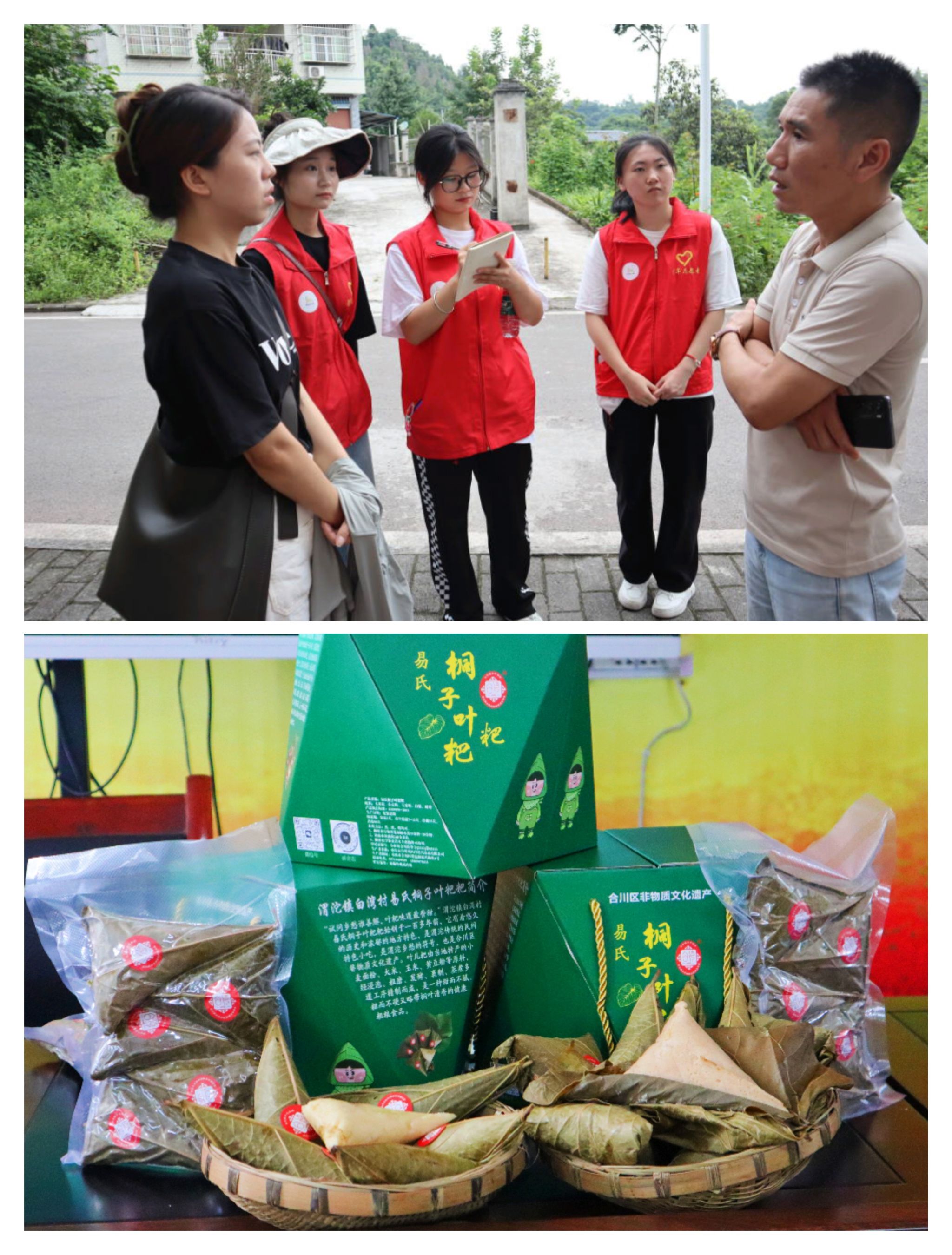 产业振兴是乡村振兴的重中之重,当前无论是巩固脱贫攻坚成果,还是全面推进乡村振兴,都需要产业发展再提速、质量在提升。要坚持精准发力,立足特色资源,关注市场需求,发展优势产业,促进一二三产业融合发展,更多更好惠及农村农民。每一个乡村都有自己的特色,共同发展铸就美好社会。到达渭沱镇白湾村后,老师和村书记带领同学们参观乡村特色,非物质文化遗产叶儿粑。针对这一非物质文化遗产的发展推广,同学们文思泉涌,纷纷提出自己的想法。下午在同学们的紧张准备下,开始叶儿粑的专属直播。叶儿粑采用当地特产小麦面粉、黄豆、大米、枸杞等天然粗粮,高温蒸煮,滋味甜蜜,老人小孩皆宜。