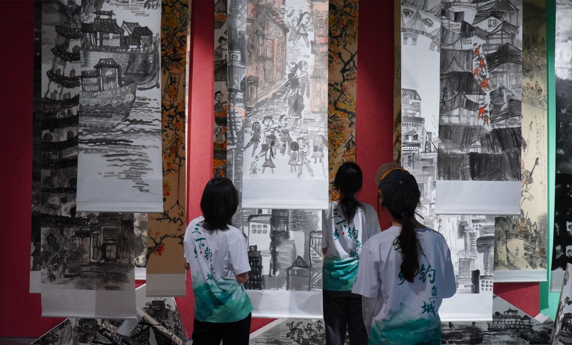 (图为实践团参观钓鱼城相关水墨画)