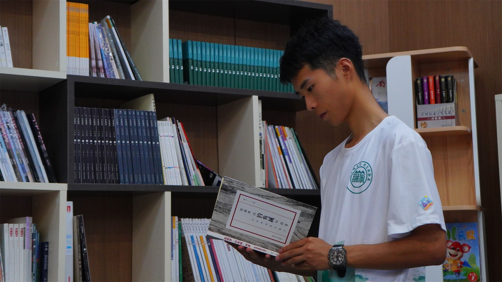 实践团成员在美术馆中发现,这里有着许多与钓鱼城有关的作品,无论是近期展出的合川中小学生的艺术作品,还是收藏在美术馆中的名家大作,都与钓鱼城的故事息息相关。创作者们将钓鱼古城的元素与现代元素相结合,创造出一个又一个让人眼前一亮的作品。同时,实践团还在美术馆中发现了许多有关钓鱼古城的书籍,这也让实践团成员情不自禁地驻足阅读。同时,也让实践团成员切实地感受到了钓鱼城对于合川人民的深远影响。