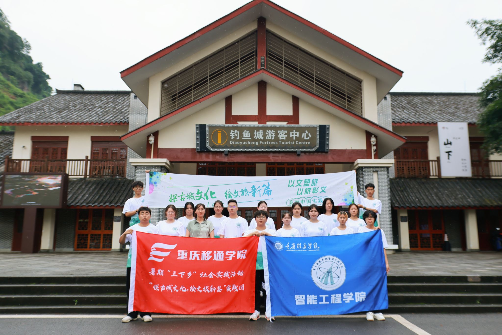 (图为实践团在钓鱼城文化艺术村合照)