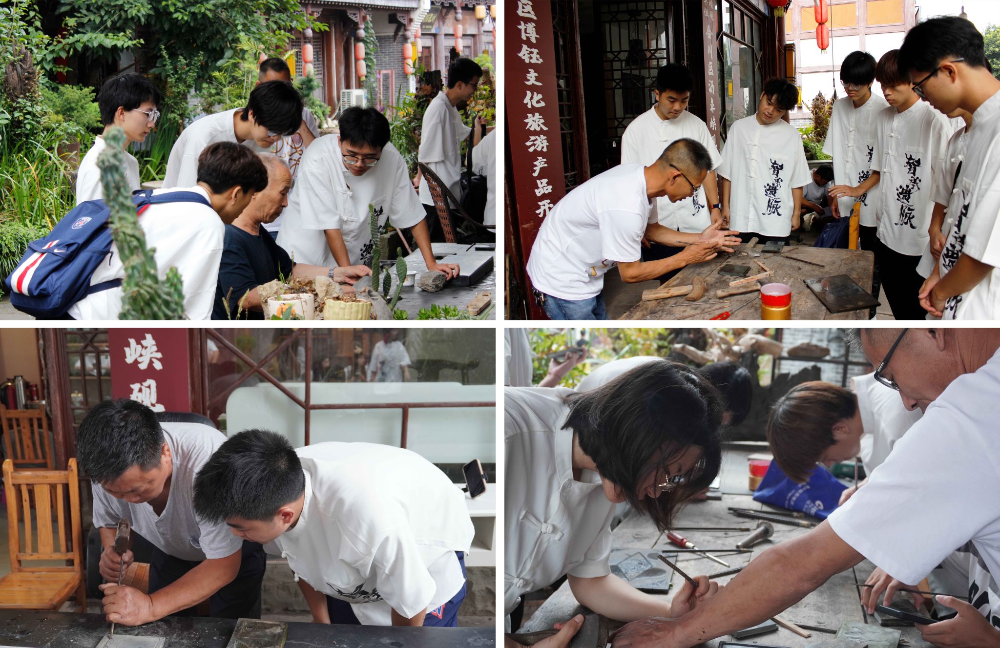 2024年7月3日,重庆移通学院“探寻非遗文化,传承峡砚艺术”考察实践团前往合川峡砚非遗传习场——合川区沥鼻峡砚石工艺厂,同合川峡砚传承人张礼雄、杨世宏、谭郡府、李祖元三位老师一起体验雕刻峡砚的过程。此次体验旨让实践团成员亲手触摸历史的细脉,感受匠人以石为纸、以刀为笔的创造力,从而深刻理解并传承中华民族传统文化的独特魅力与智慧。
