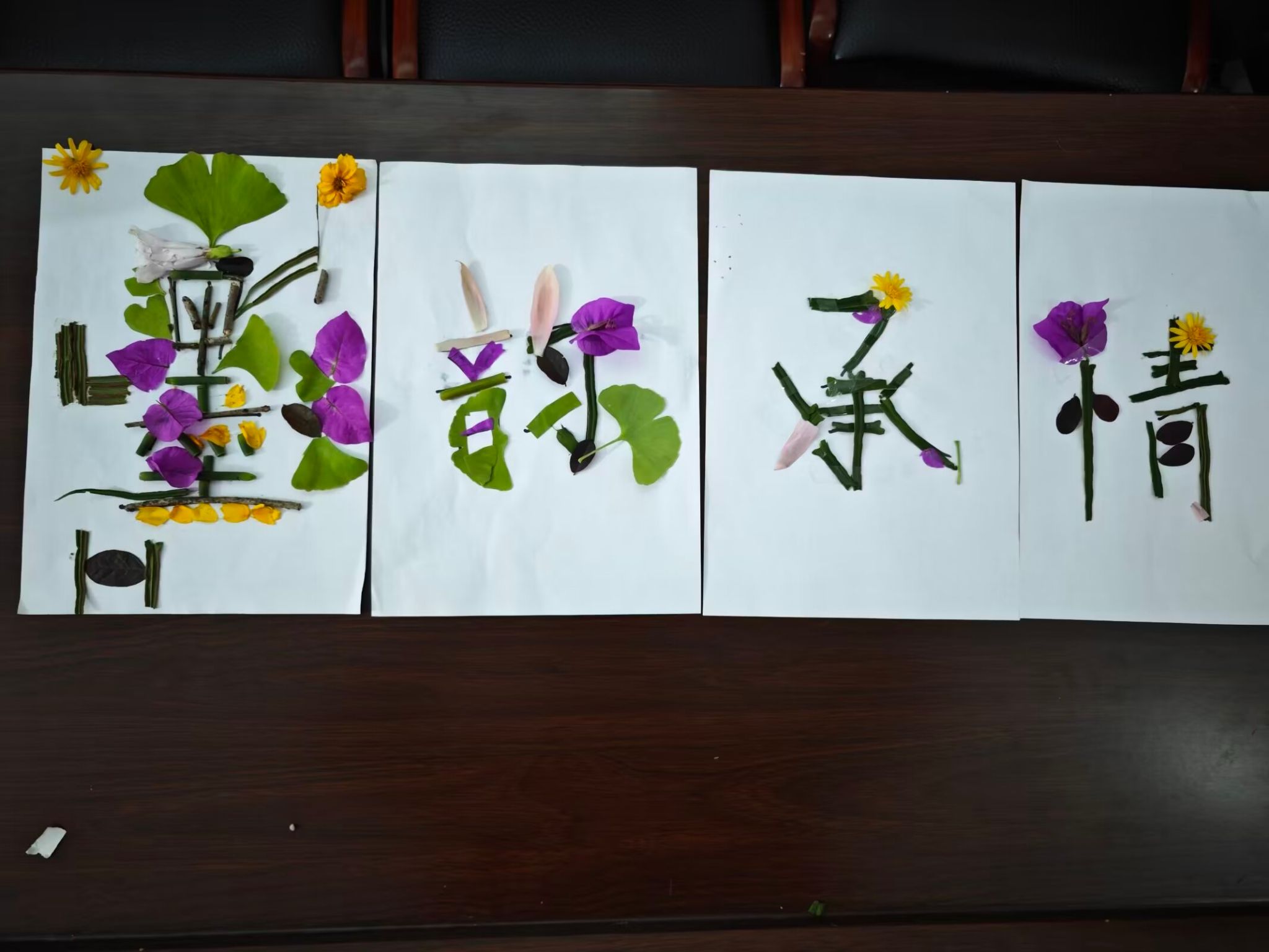 志愿者们引导青少年们利用这些大自然的馈赠,通过拼接树枝、树叶,或是利用花草的形态与色彩,创意性地表达汉字与词汇。这一过程不仅是一次对汉字文化的直观体验,更是一场关于自然与人文融合的深刻教育。通过这样的活动,小朋友们不仅增长了汉字知识,更培养了他们对自然环境的保护意识,以及对传统文化的尊重与传承责任感。