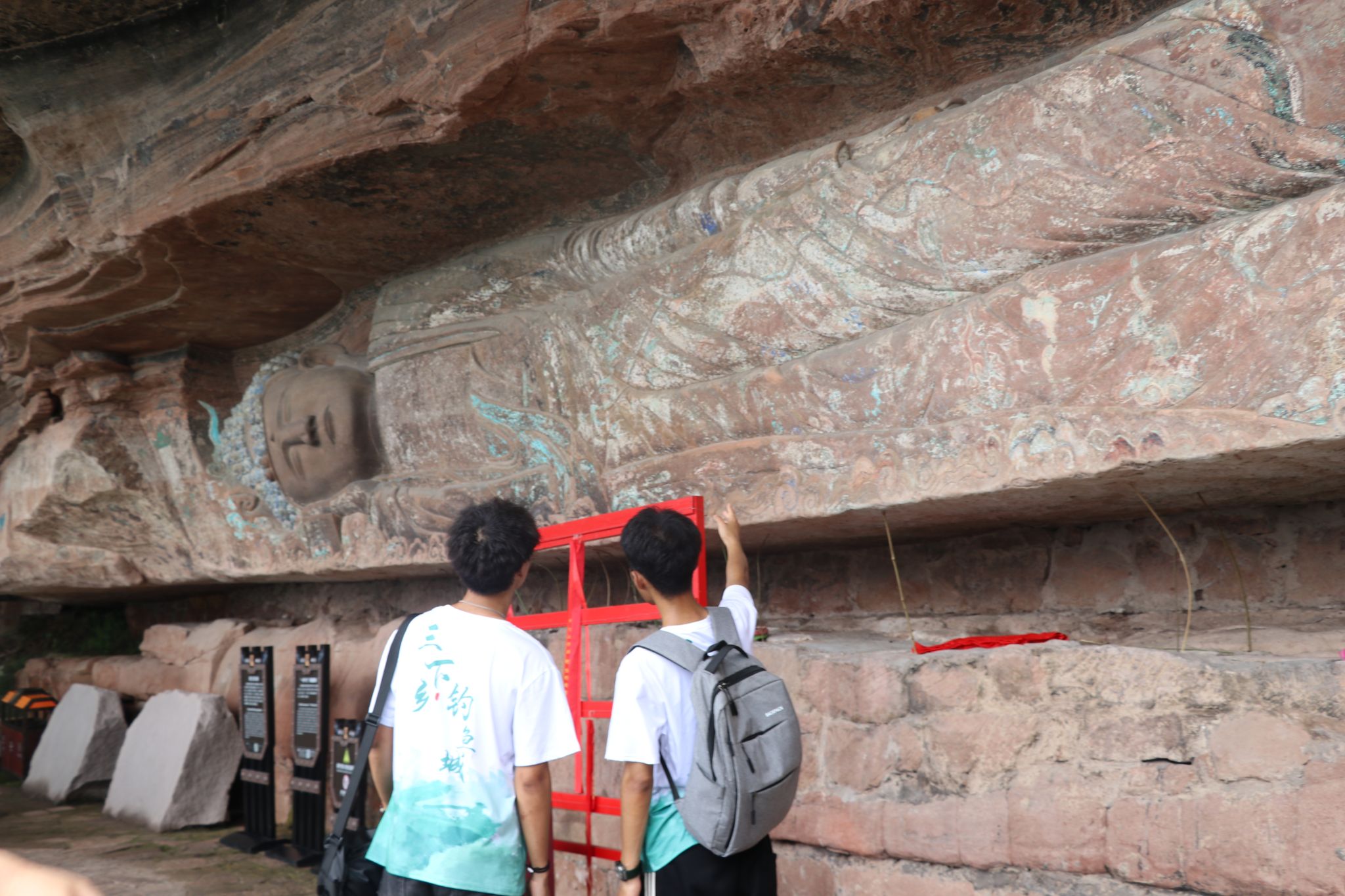 当实践团踏入钓鱼城古战场遗址,亲眼看着如此恢宏的古城门、古城墙时,实践团成员纷纷驻足观看,发出连连赞叹。实践团穿梭在钓鱼城遗址的古迹之间,从武道衙门、步军营、水军码头、卧佛等景观中,仔细地品读着钓鱼城悠久的历史韵味。而进入到钓鱼城古战场遗址博物馆,了解到钓鱼城背后的故事时,无论是游客还是实践团都为之震撼与感慨。