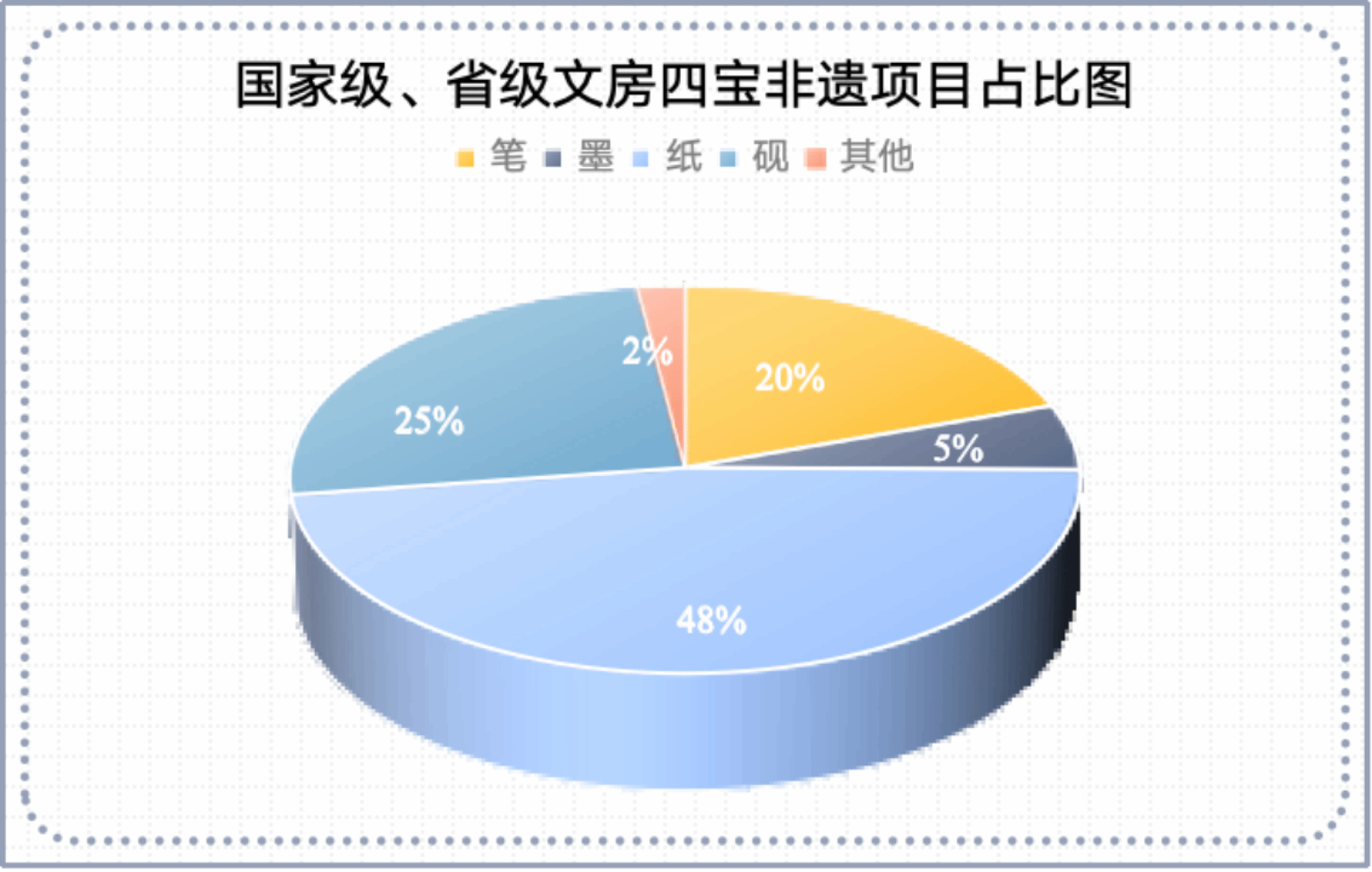 (图为国家级、省级文房四宝非遗项目占比饼状图)