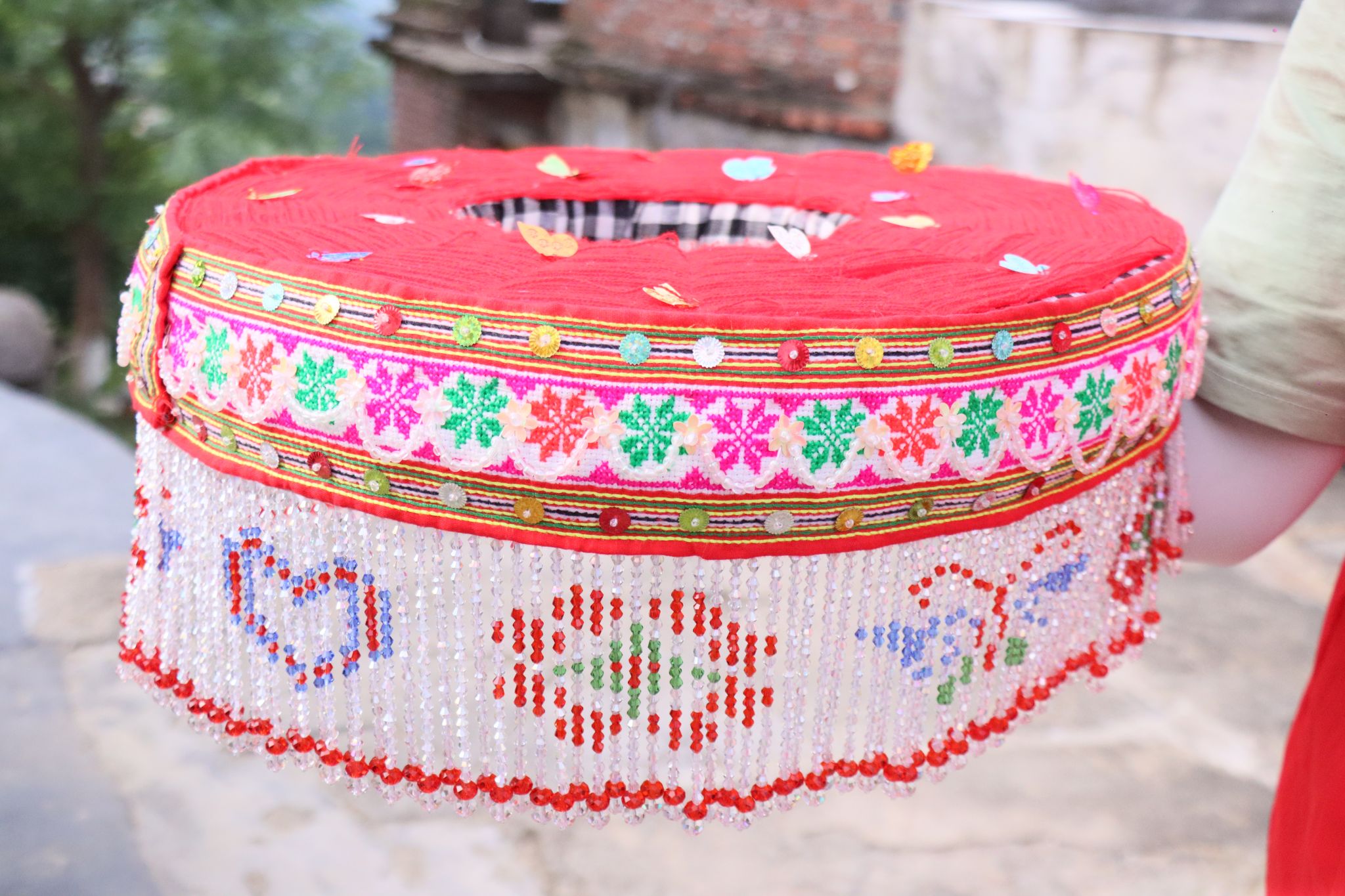 一针一线,是指尖上的传承。一位位苗族姑娘,穿着手绣红苗嫁衣步入人生下一站。今日,志愿者们与石鼓村一名苗家婆婆相遇,彼此相谈,志愿者们了解到婆婆是一名退休的石林镇讲解员。更有幸,婆婆带领志愿者进入她家中,也进入了红苗刺绣的世界。蝴蝶、绣花、落珠¼¼一套红白蓝相间的苗绣-服饰,一针一线皆出自婆婆之手。