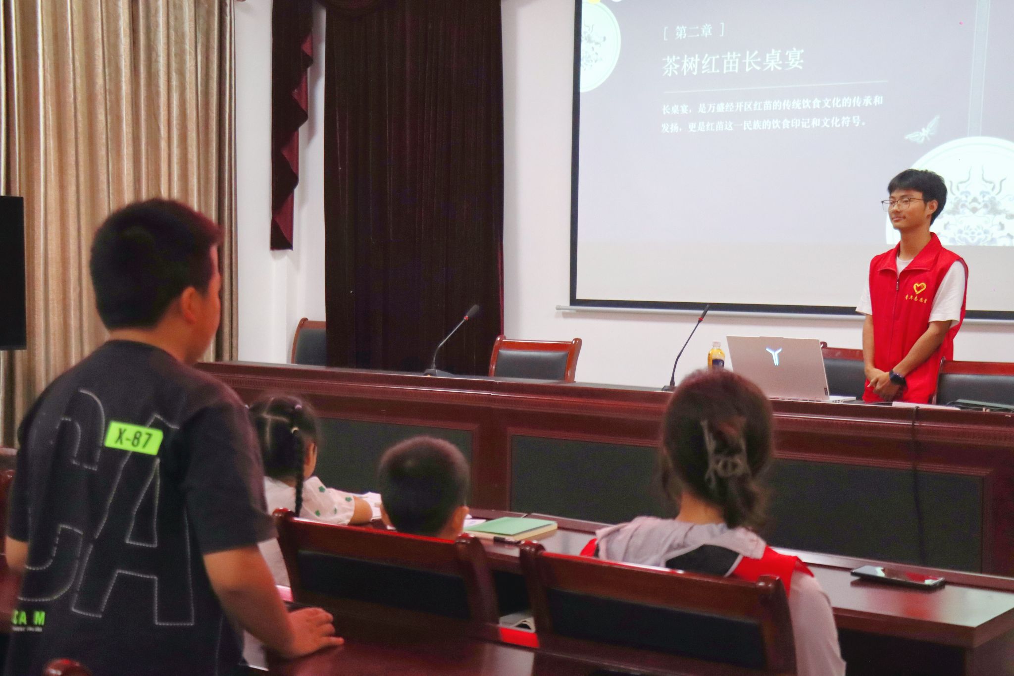 非遗不能“冻”起来,要“动”起来。只有“动”起来,文化才能“活”过来。因此志愿者们以兴趣为导向从火烧糯米酒、长桌宴、苗族服饰以及石鼓礼歌四个方面开展文化传授小课堂,还以“红苗织梦、非遗文化”为主题开展关于“你眼中的家乡”绘画互动,小朋友们热情配合着志愿者们,志愿者和小朋友建立更加深厚的友谊的同时也加强了当地与我们的联系,课堂显得弥足珍贵。