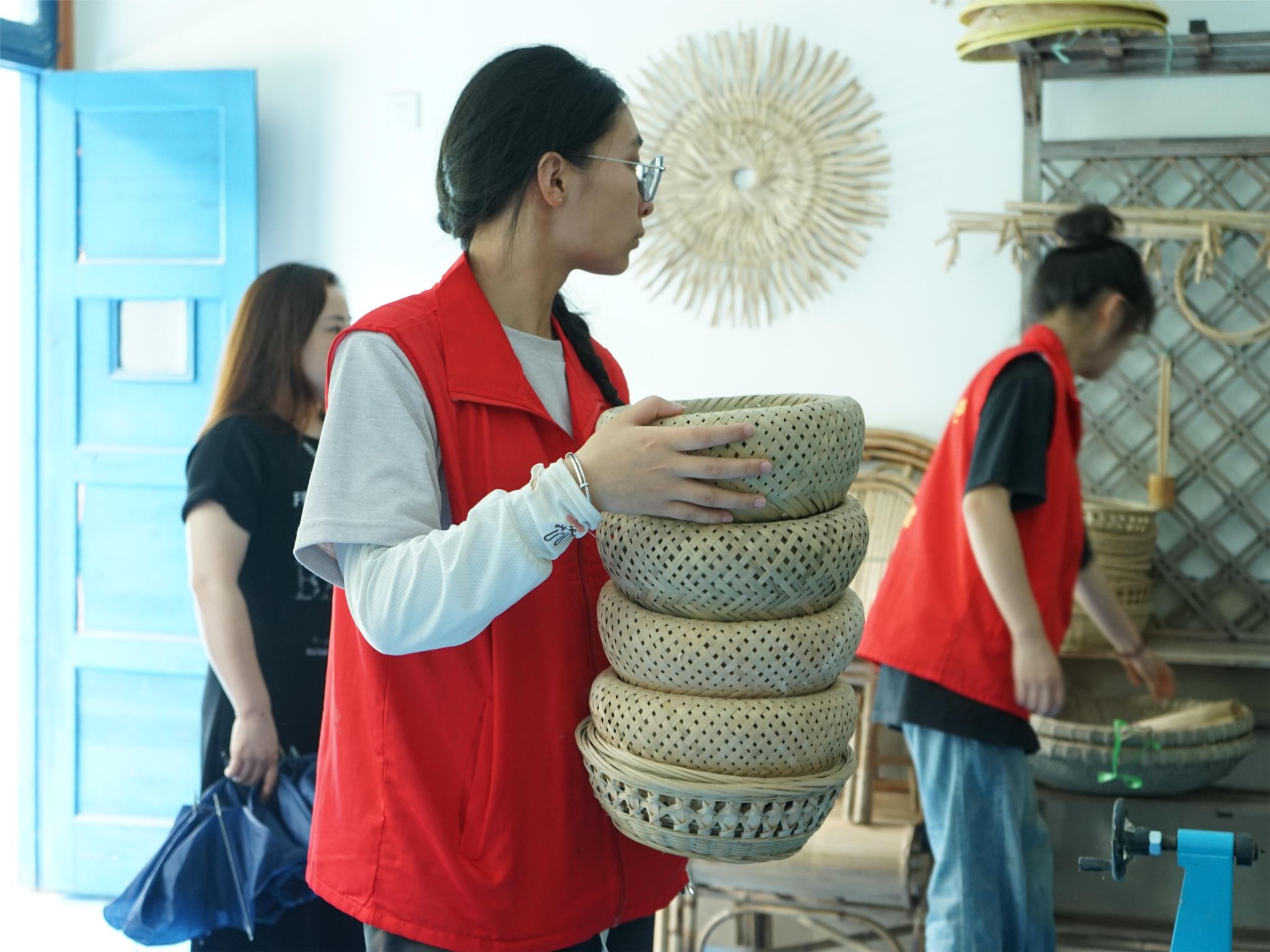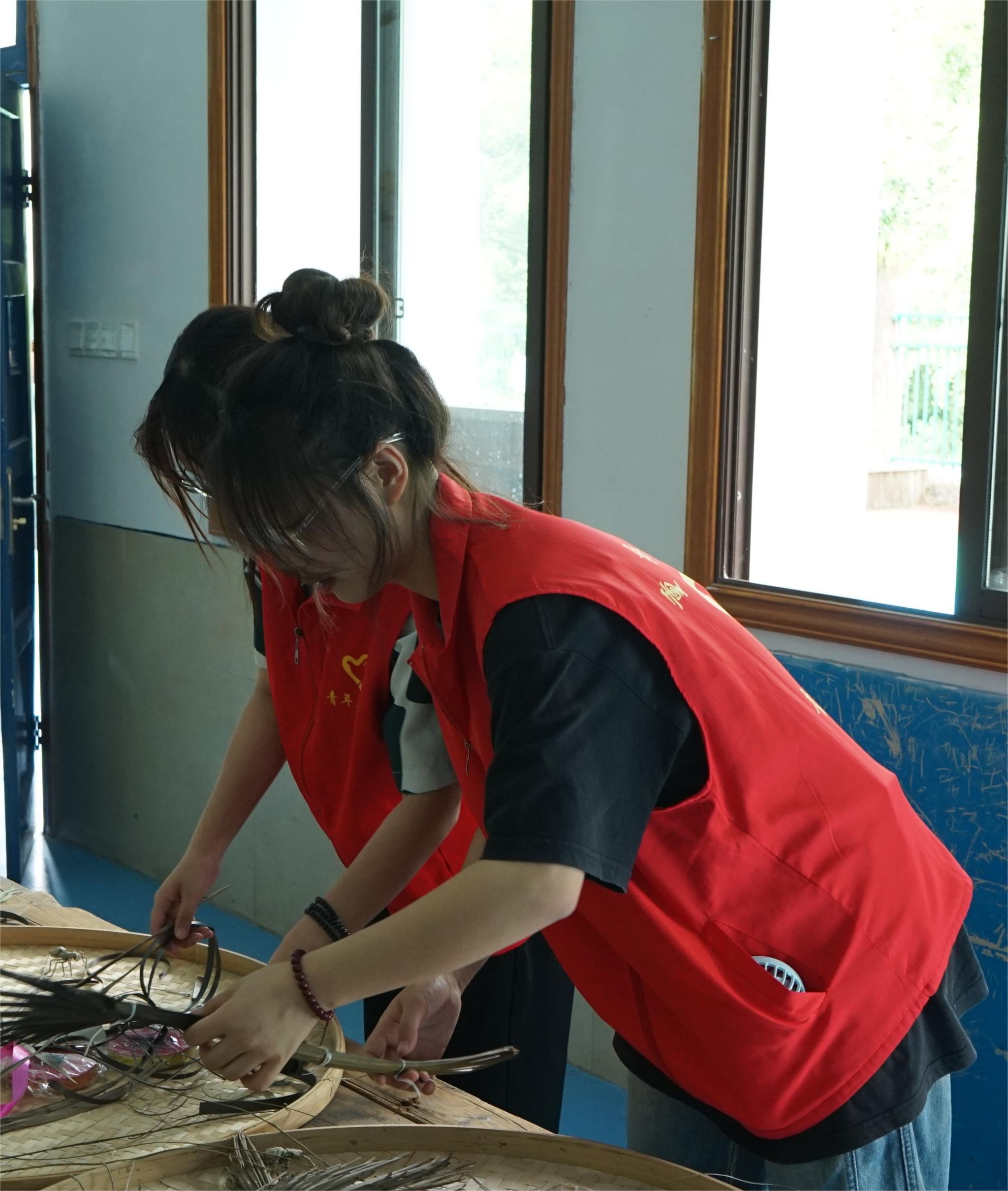 午后14时,志愿者们的身影又出现在了凉风村。他们此行的目的是探索和学习非物质文化遗产——竹编技艺。在凉风村一位资深老艺人的带领下,这群满怀热情的志愿者们踏入了竹编技艺的世界。老艺人以他那历经岁月磨砺的巧手,一边展示着竹编技艺的精湛,一边缓缓讲述着这项技艺背后的悠久历史与深厚文化底蕴。“一路‘乡’阳”乡村振兴促进团的志愿者们此次在凉风村的竹编技艺学习之旅。他们用自己的行动诠释了当代青年对传统文化的尊重与传承,也为竹编技艺的未来发展注入了新的活力与希望。