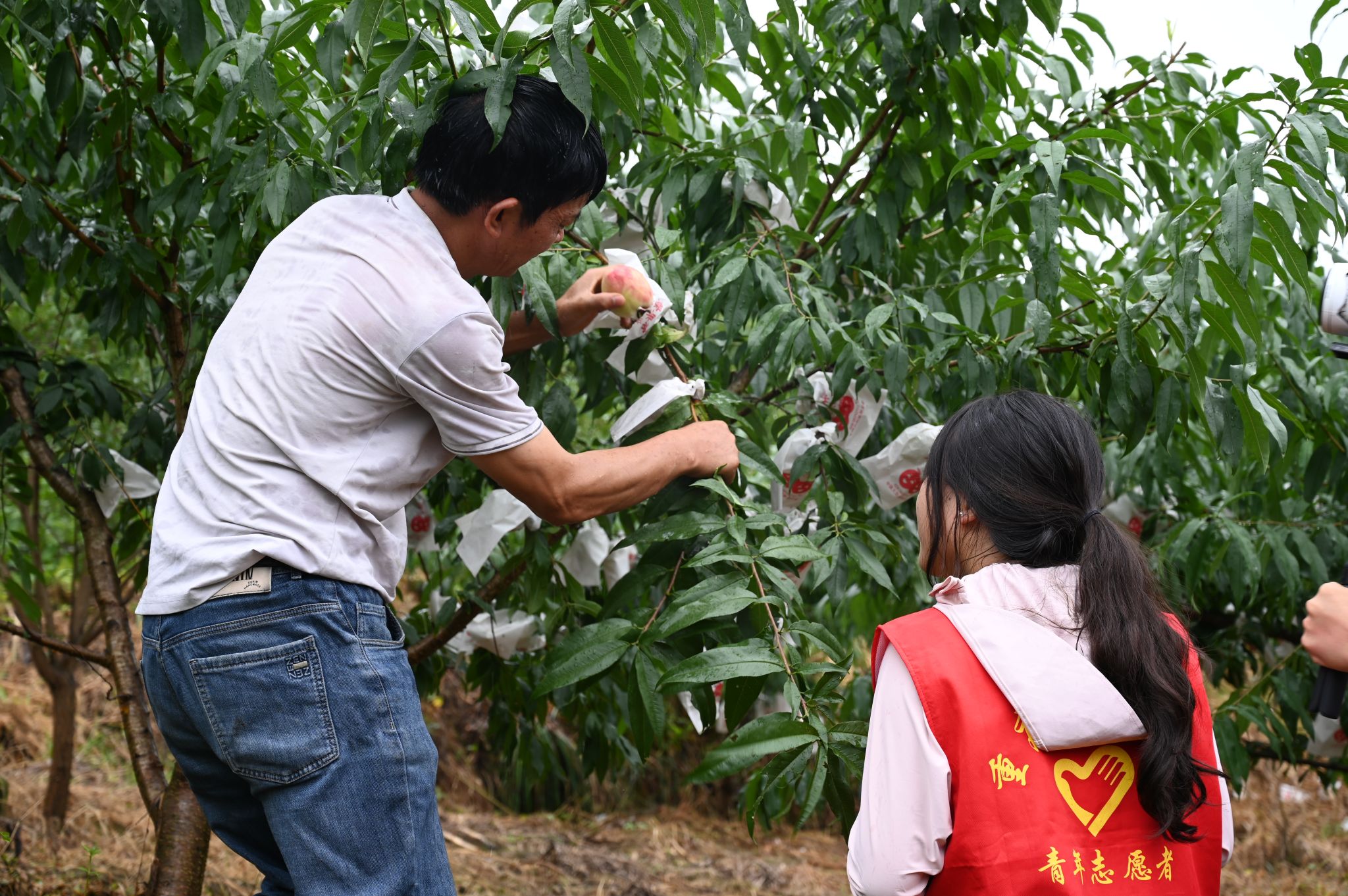 志愿者们前往邻近的光明村,满山遍野的桃树上挂满了沉甸甸的果实。志愿者们亲手采摘桃子,体验农耕乐趣,并通过社交媒体等平台,提升当地农产品的知名度。“一路‘乡’阳”乡村振兴促进团的此次行动,不仅是一次简单的志愿服务活动,更是一次对乡村振兴战略深入理解和积极实践的生动体现。他们用自己的行动诠释了当代青年对乡村的热爱与责任,也为推动中国乡村的全面振兴贡献了自己的力量。