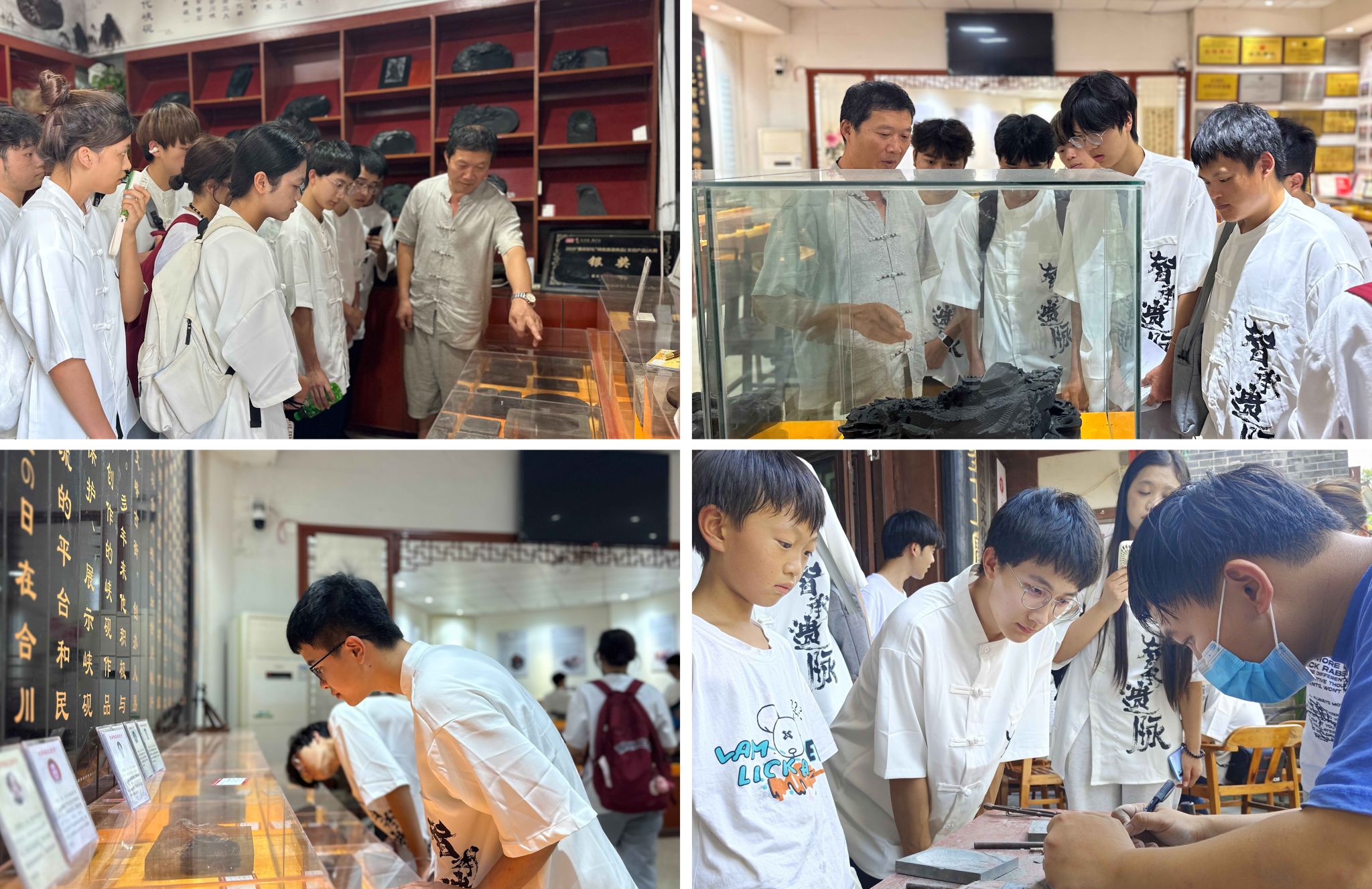 (图为合川峡砚传承人易宗成老师带领实践团参观博物馆)