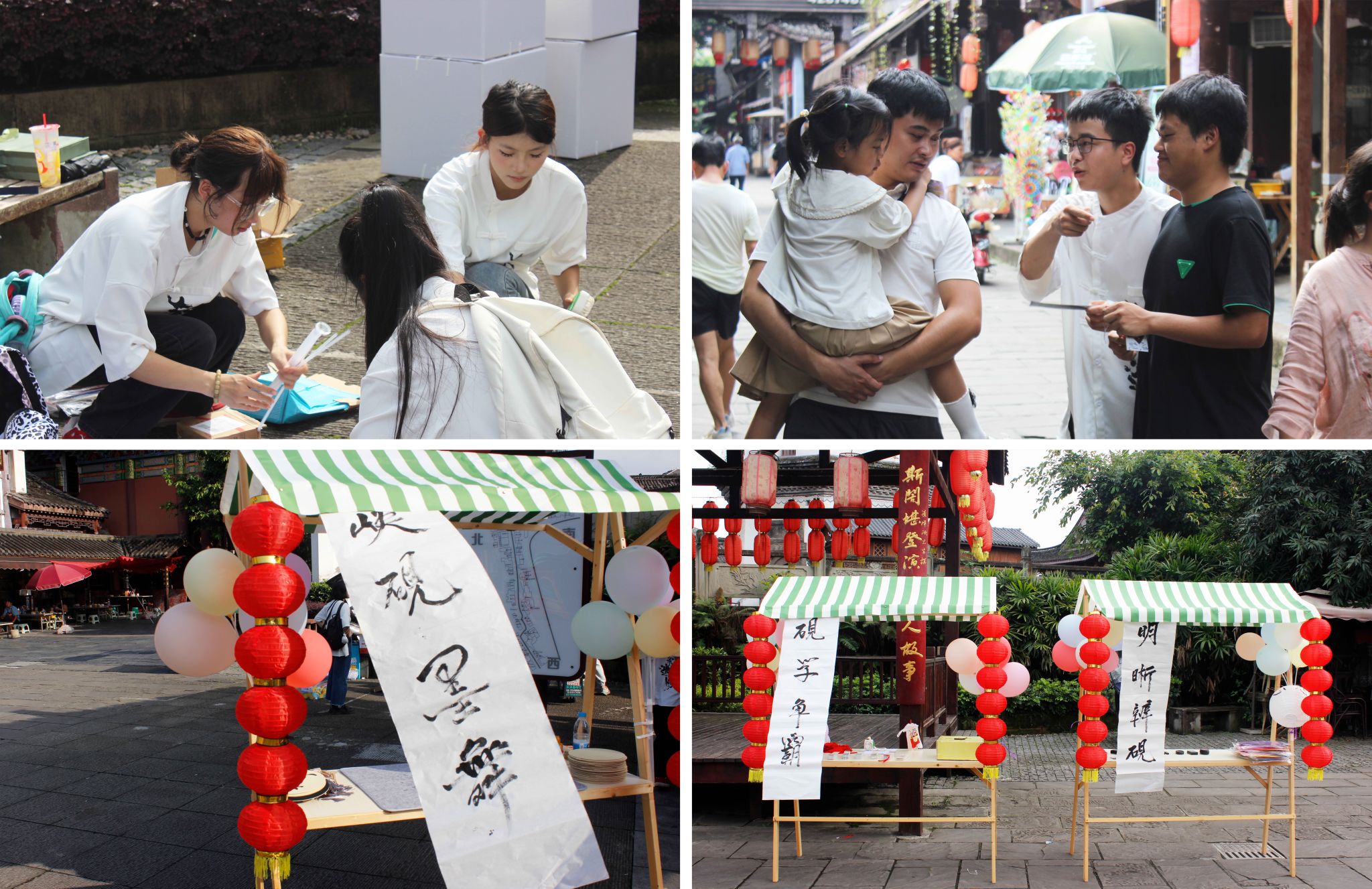7月5日,实践团成员来到文峰古街白塔下,举办了一场旨在宣扬合川峡砚文化的公益体验活动——“峡砚体验市集”。“砚学争霸”、“明晰辨砚”、“峡砚墨舞”三大体验摊位的设立,吸引了众多市民及游客前来参与。而合川峡砚传承人张礼雄、谭郡府、李祖元老师的到场及支持,更加增添了活动现场的文化底蕴。在一挥一笔、一问一答、一指一认后,前来体验的市民及游客对于合川峡砚有了更进一步的认识。
