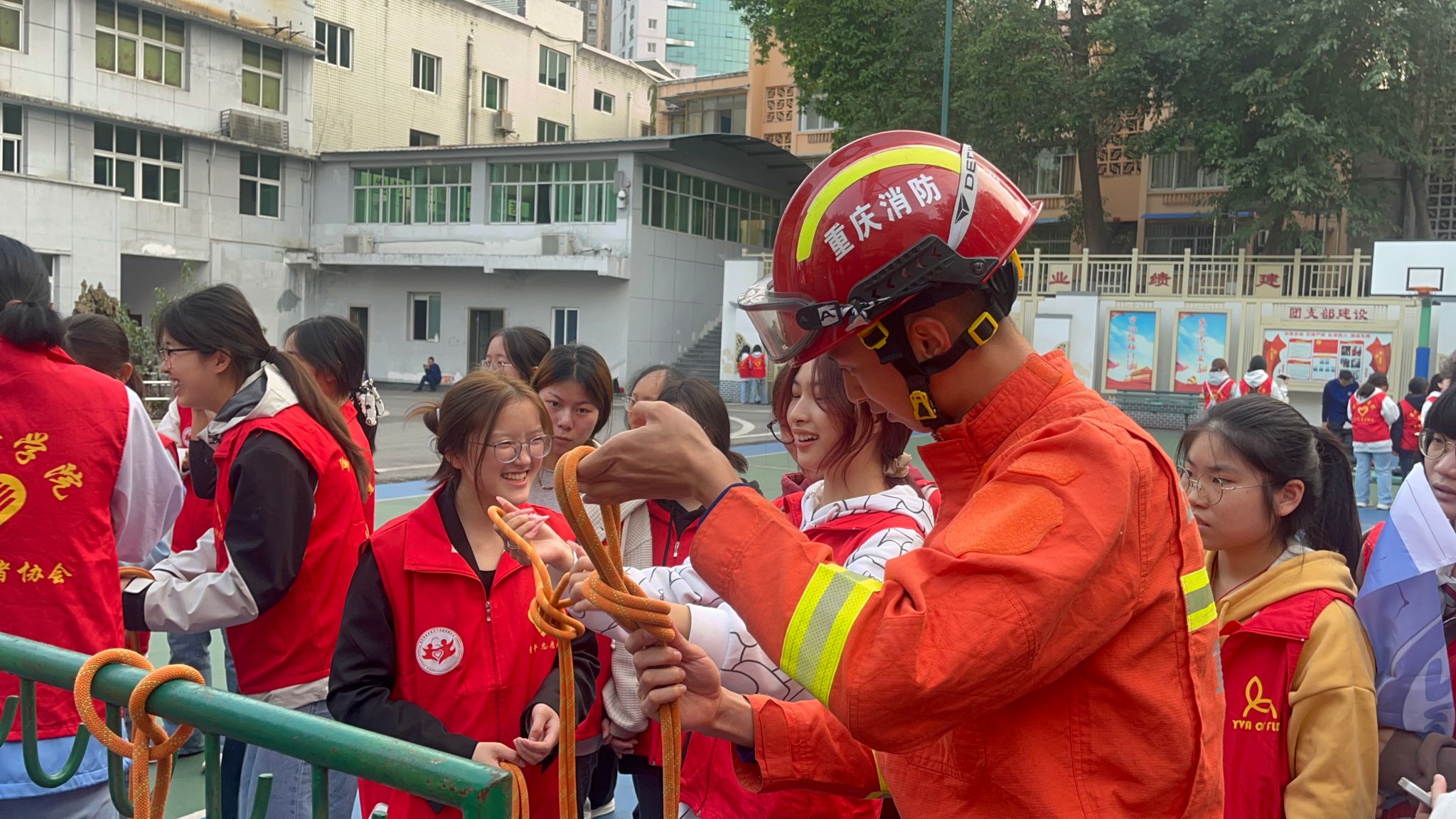 在消防队的地下操场,平日里只能在街头或电视上惊鸿一瞥的消防设备整齐排列,瞬间吸引了同学们的目光。消防员化身专业导师,首先为大家详细介绍了单结、双结、平结和渔人结等常见结绳方法,并着重强调了结绳在火灾逃生等紧急情况下的救命作用。在消防员的耐心指导下,每位同学都亲自动手进行结绳练习,起初,大家手法生疏,但在消防员的悉心纠正下逐渐熟练起来。当亲手打出一个个紧实的绳结时,同学们心中涌起一股成就感,也真切意识到这些看似简单的技能在关键时刻可能就是生命的保障。