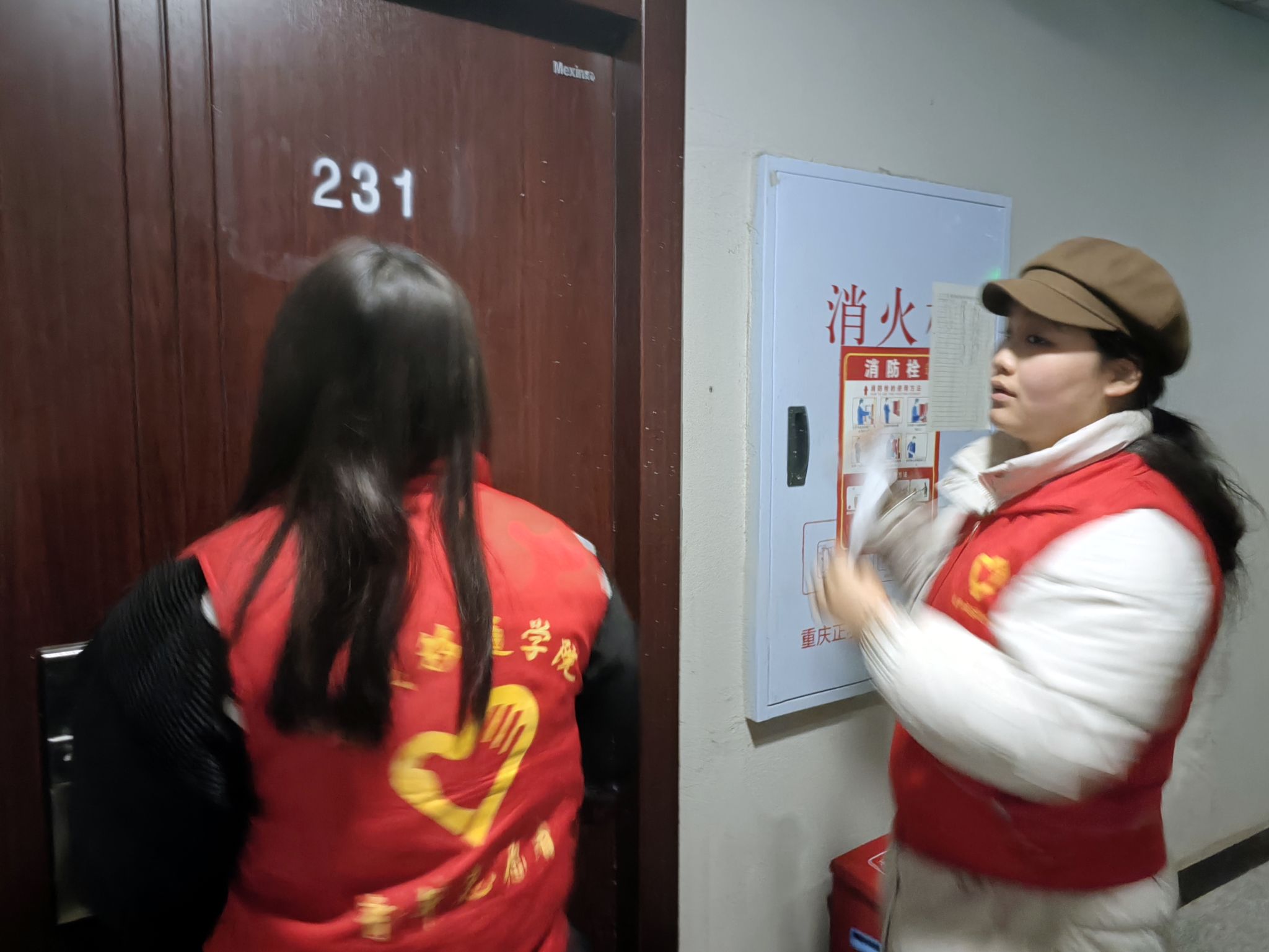 进入后,志愿者们分工协作,有人检查电器设备,排查违规电器与私拉乱接现象;有人检查寝室环境,查看有无违规饲养宠物、私开小卖部等情况,对寝室各个角落细致检查。他们对阳台、厕所等区域也进行细致查看。每一个角落都不放过,心里默念着:“安全无小事,任何一点疏忽都可能带来意想不到的后果。”在检查过程中,有的同学表现出不理解,志愿者们耐心地解释着查寝的目的和意义,努力让同学们明白这是为了大家的安全着想。遇到复杂情况,他们及时向工作人员请教,内心既感激工作人员的经验和指导,又担心自己的失误会影响整个查寝工作的进度。