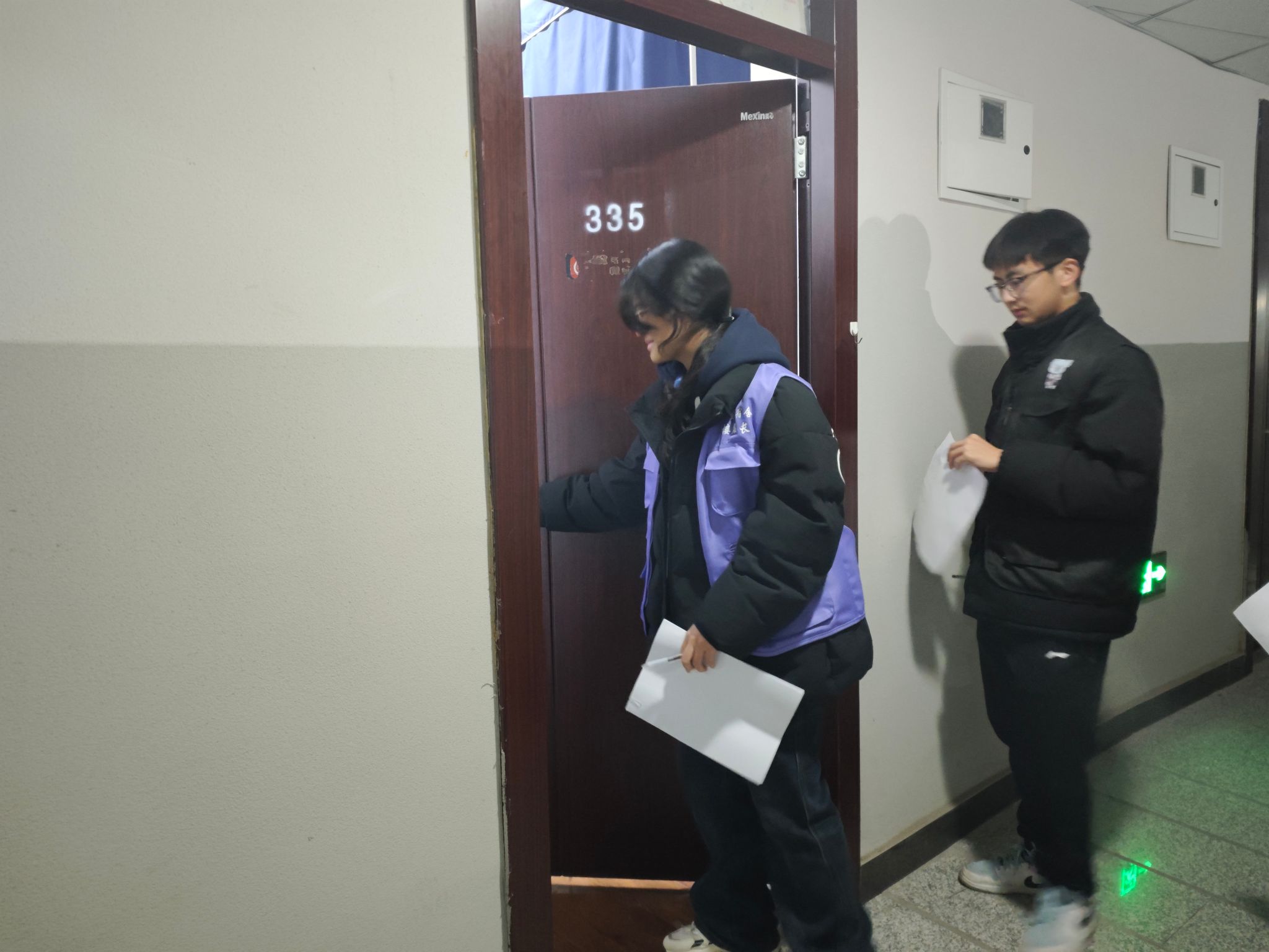 当晚21:00,查寝正式开始。志愿者们手持查寝记录表,站在寝室门前,心中既充满了责任感,又有些许紧张。他们深知这次查寝的重要性,不仅关乎同学们的安全,也是一次难得的锻炼机会。“咚咚咚”,敲门的声音在寂静的走廊里响起,每三下一组,每组间隔3秒,随后志愿者们清脆地喊道:“同学你好,宿管会督检部查寝”。等待的瞬间,志愿者们的心跳似乎都加快了几分,他们担心同学们是否会配合,也在心里默默提醒自己要保持礼貌和专业。
