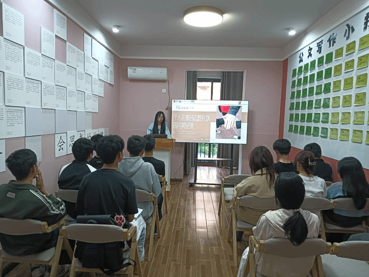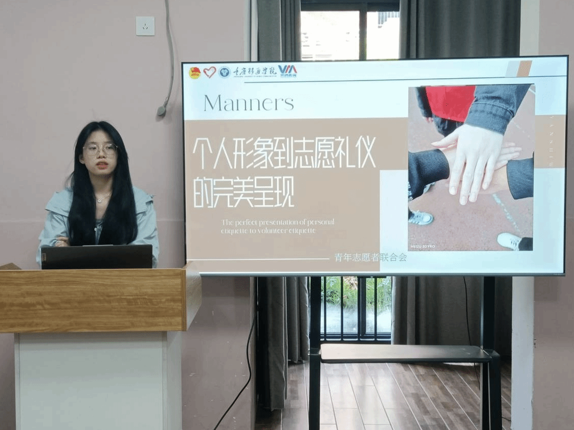 “得体的仪容、举止、沟通礼仪,展现志愿者个人的良好素养和精神风貌,也代表志愿服务组织和社会文明形象。”何漫琪同志先详细的从管理者、组织者、参与者三个方面介绍了学校的七大志愿服务组织,以及从“如何学习志愿服务精神,从哪儿参与志愿服务,怎么去做志愿服务”三个方面讲解了志愿服务礼仪。她生动地描述着志愿服务中的点点滴滴,每一个细节都仿佛跃然眼前,让人身临其境。从她的讲述中,在场的参与者们都感受到那份真挚与热情,仿佛和她一同经历了那些难忘的瞬间。