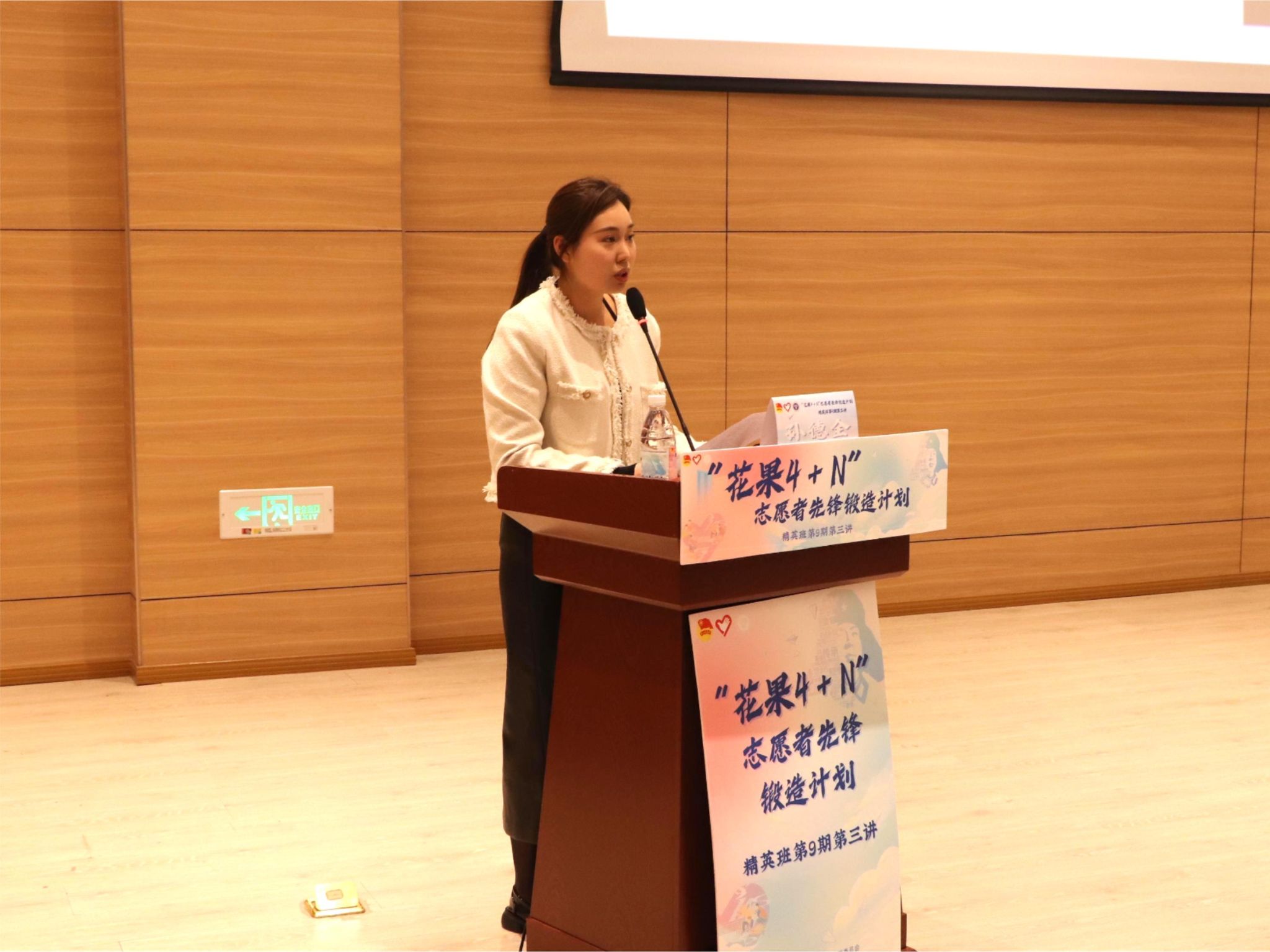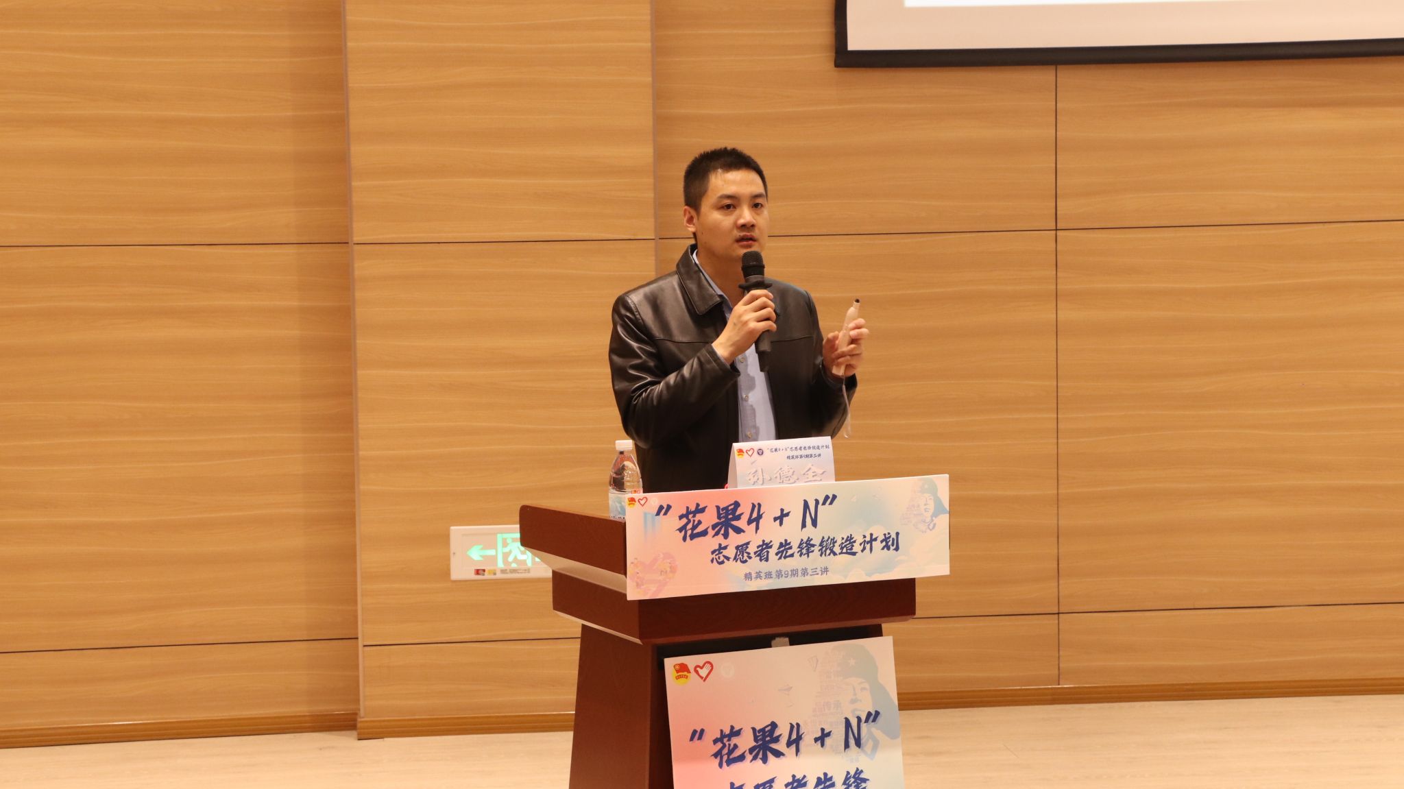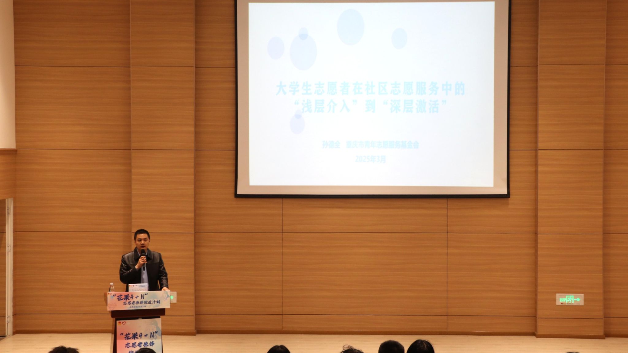 3月28日,我校志愿服务骨干孵化园——花果“4+N”志愿先锋锻造计划精英班第九期第三讲在六度空间创梦空间顺利开课。重庆市志愿服务发展基金会秘书长孙德全受邀作《大学生参与基层治理的“跨界”探索》专题授课,通过理论解析、案例解码与实践推演,为学员解锁基层治理创新路径,助力青年志愿者突破服务边界。