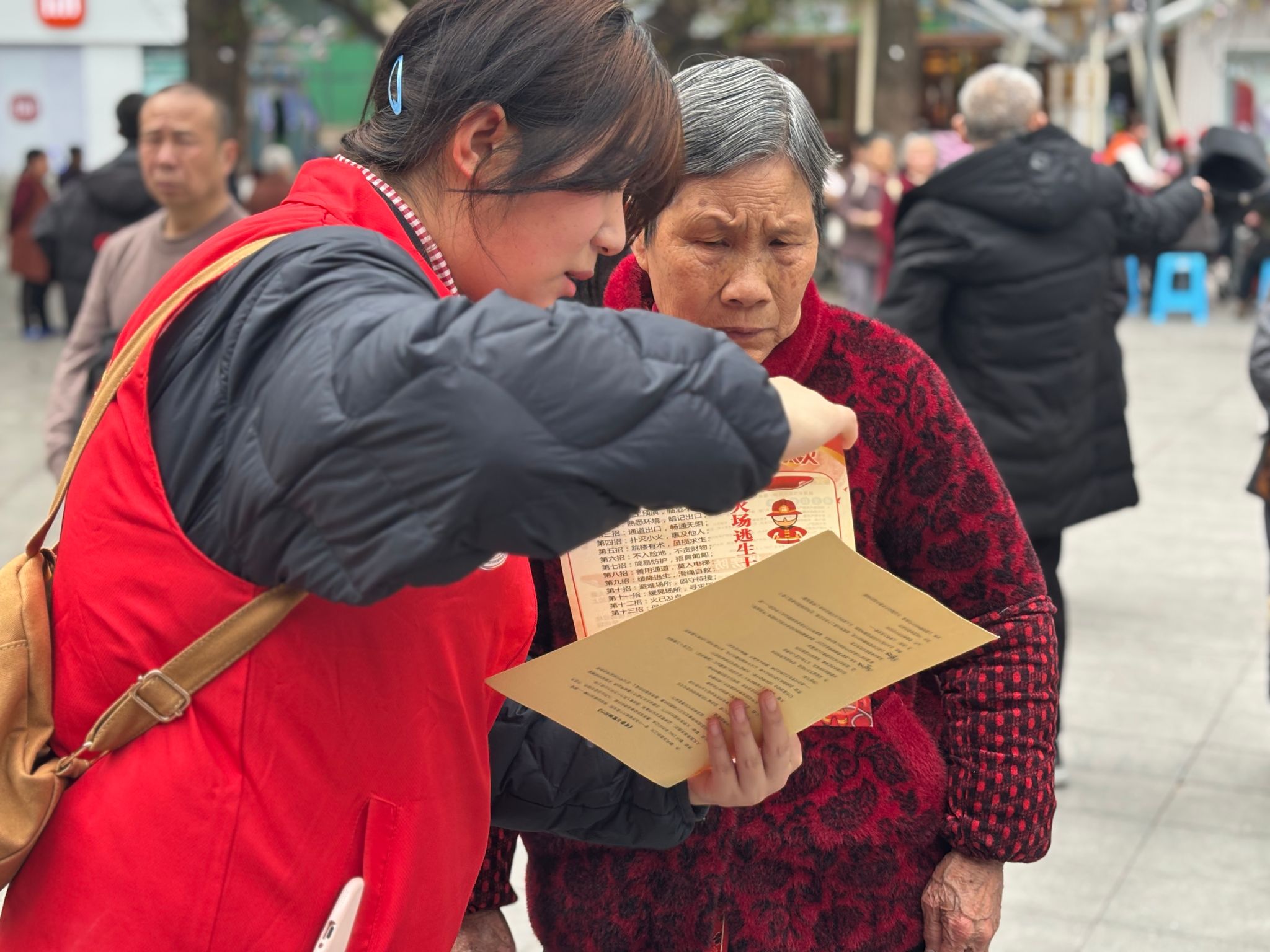 活动现场还设置了反诈知识有奖问答、防骗技巧展示等环节,支队志愿者们积极协助社区工作人员,为居民发放宣传手册200余份。在节目表演前后,志愿者们分组在塔耳门广场开展普法反诈宣传。他们手持宣传单,主动向过往居民讲解最新诈骗手段和防范技巧。