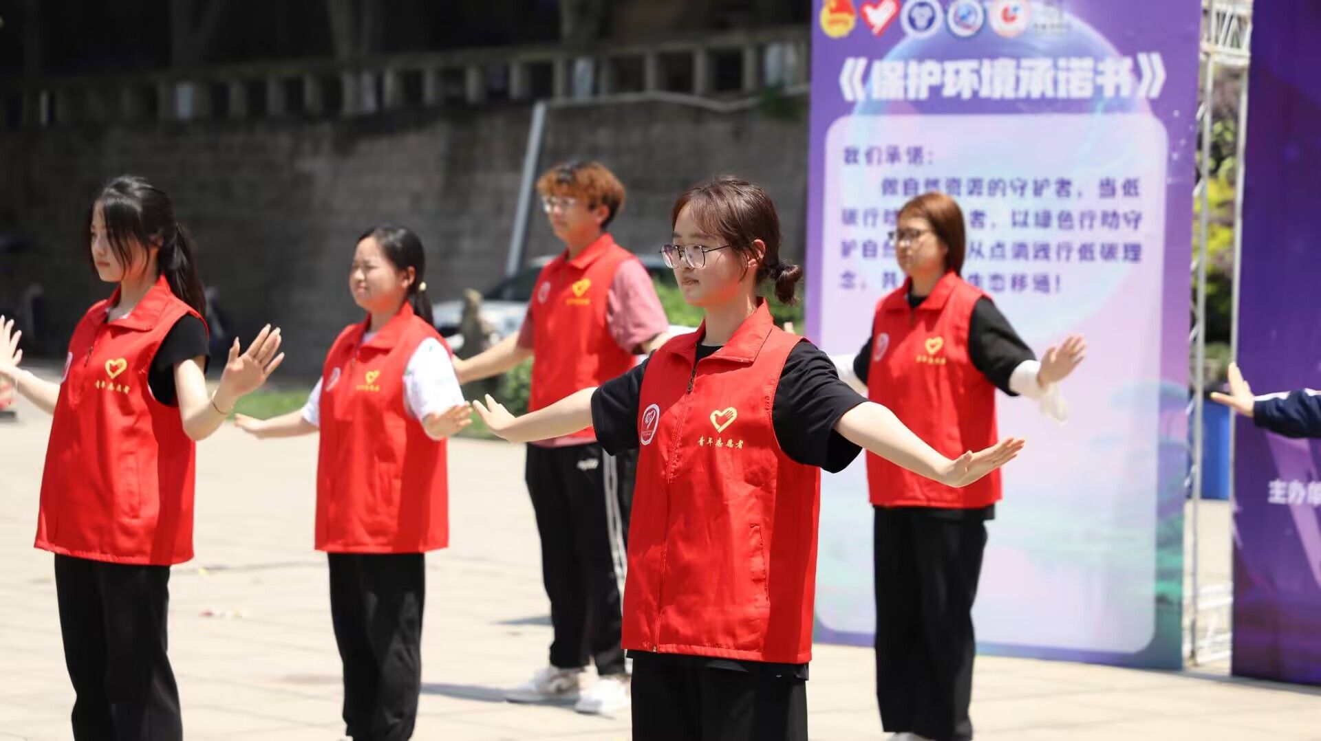 活动以一场充满创意的开幕式拉开帷幕。开场节目《环保时装走秀》以其独特的设计和深刻的环保寓意,瞬间点燃了现场的气氛。志愿者们表演的环保主题手势舞整齐划一、意蕴深远,生动传递了"保护环境,人人有责"的公益理念。随后重庆移通学院团委志愿服务中心老师徐一丹致辞、志愿者代表发言,强调了环保的重要性以及此次活动的创新意义。随后,全体人员共同签署了环保协议,郑重承诺将积极参与环保行动,为保护地球贡献自己的力量。