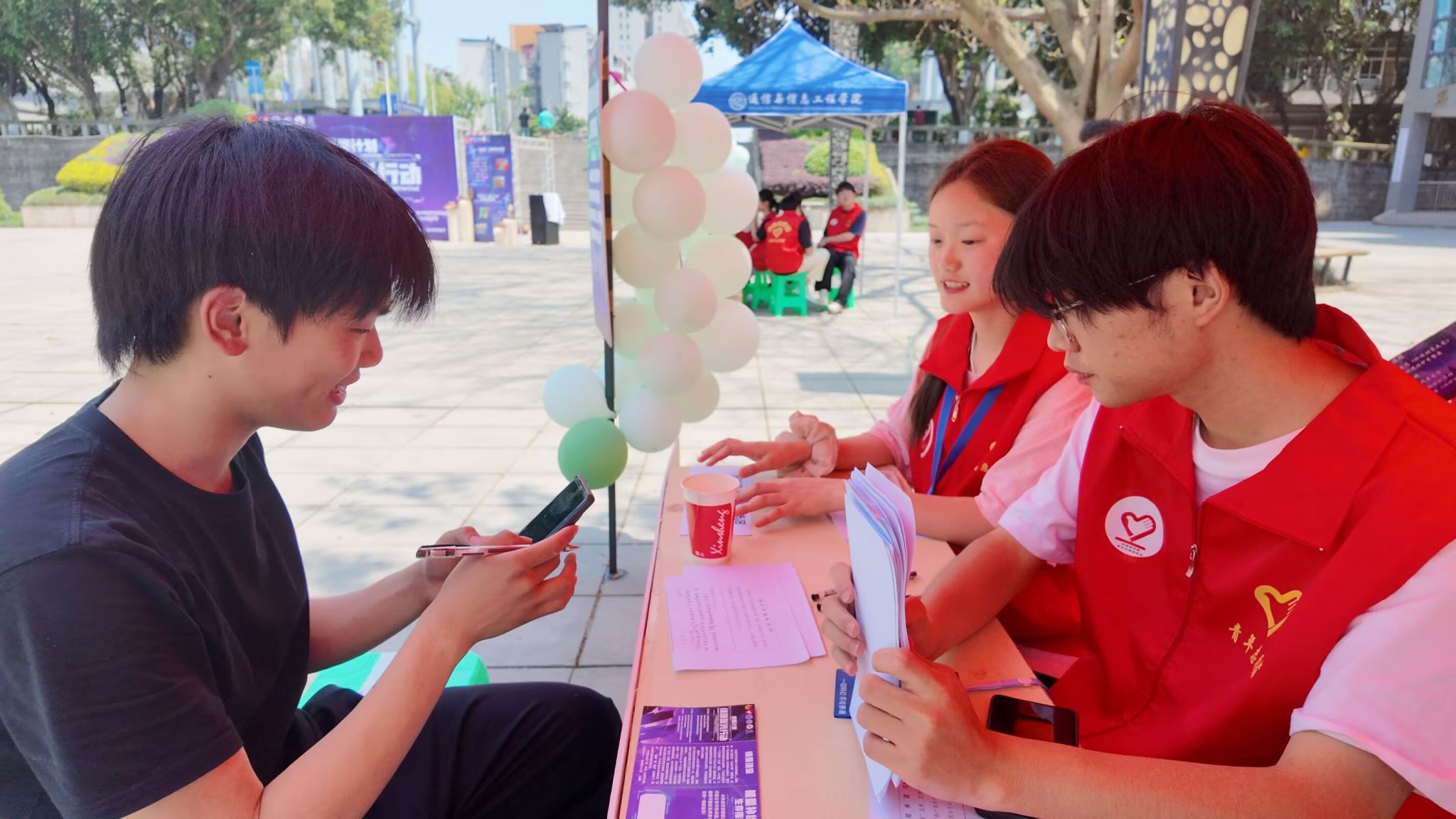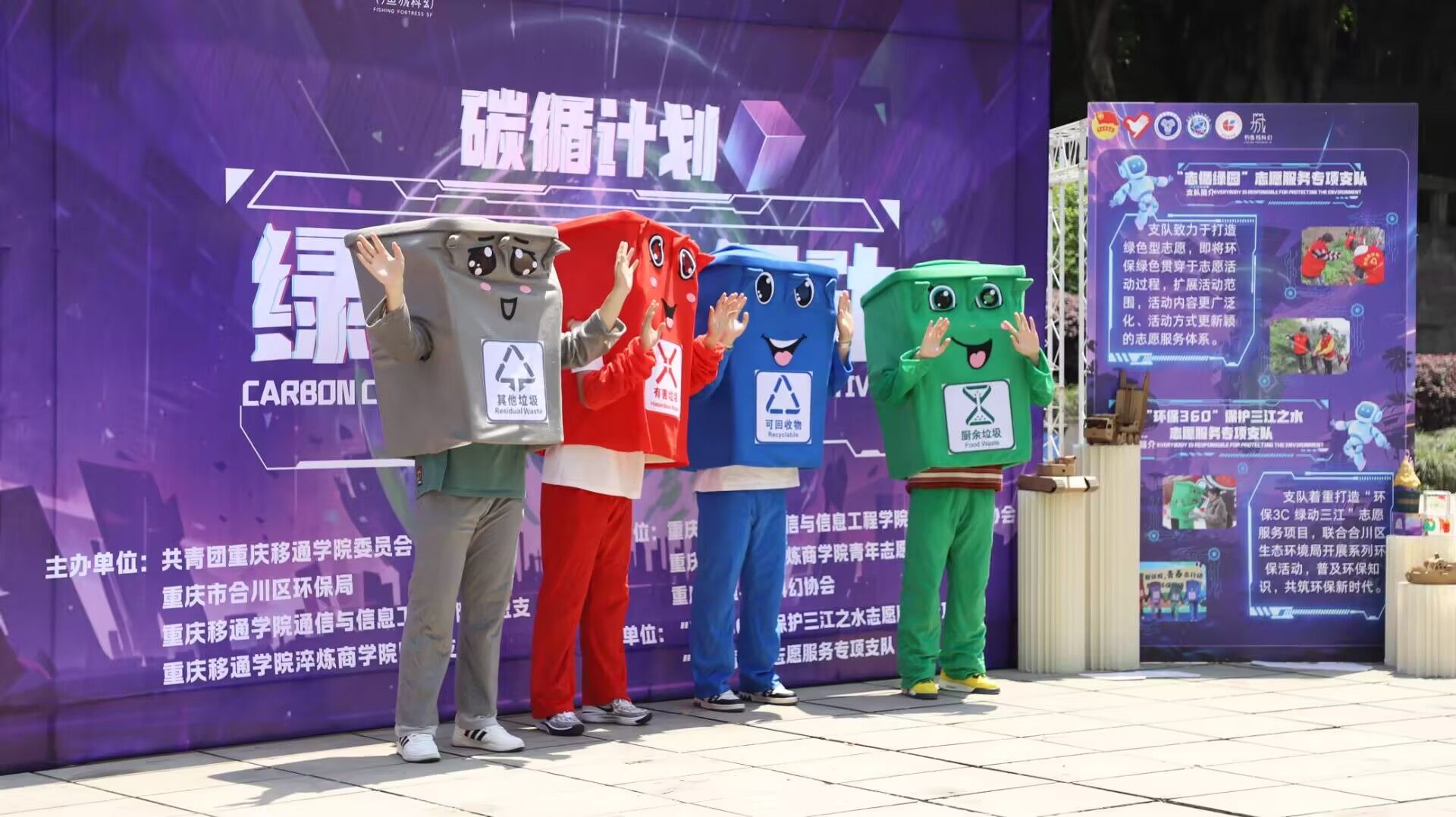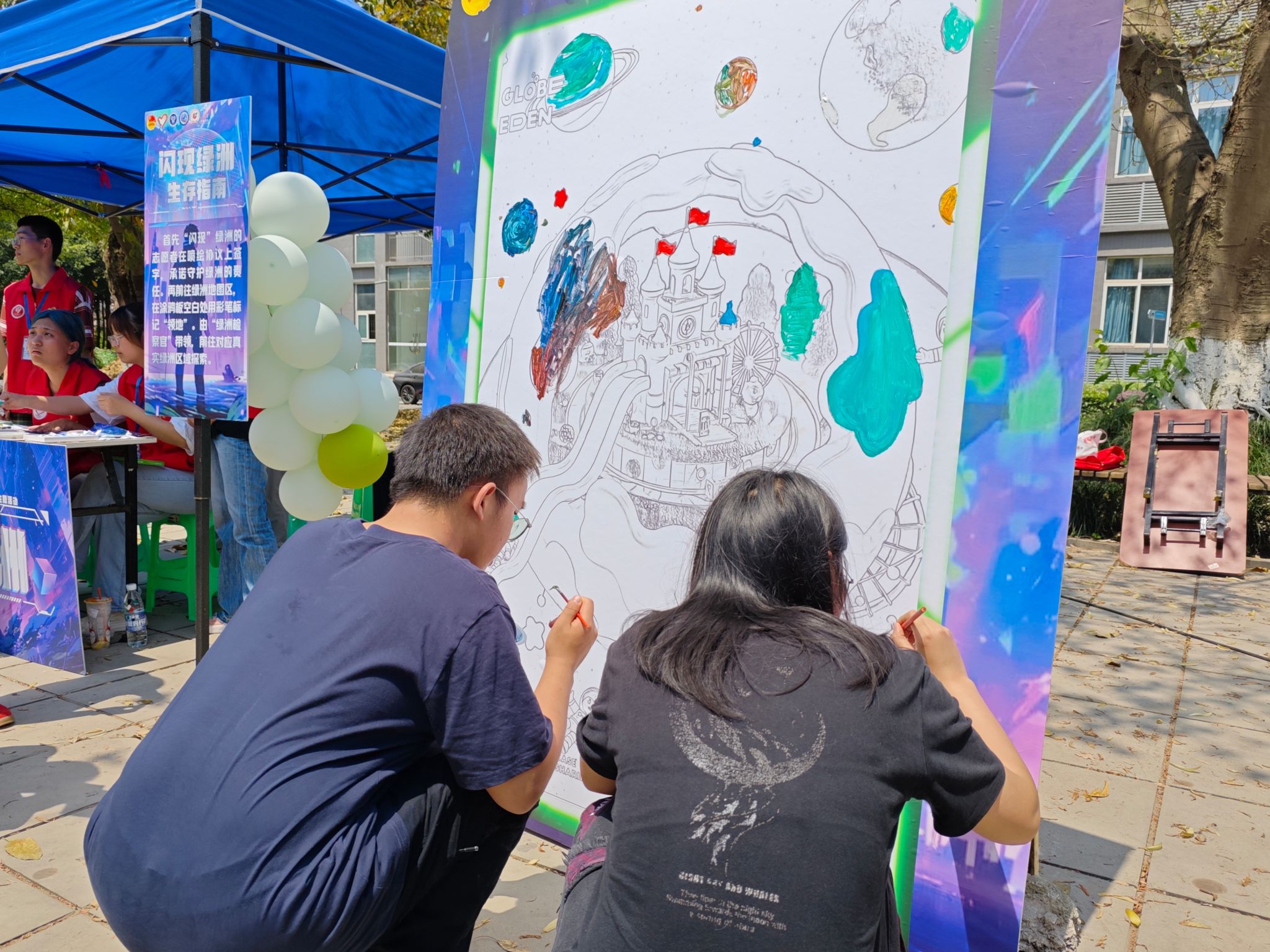 为提高全校师生对环保问题的关注度,激发大家参与环保行动的积极性。在第56个世界地球日来临之际,通信与信息工程学院“环保360”保护三江之水志愿服务专项支队联合合川区生态环境局、通信与信息工程学院青年志愿者协会、淬炼商学院青年志愿者协会、重庆移通学院科幻协会于2025年4月18日下午在重庆移通学院黄桷树广场举办2025年“碳循计划:绿洲复兴行动”——彩色地球环保主题活动。