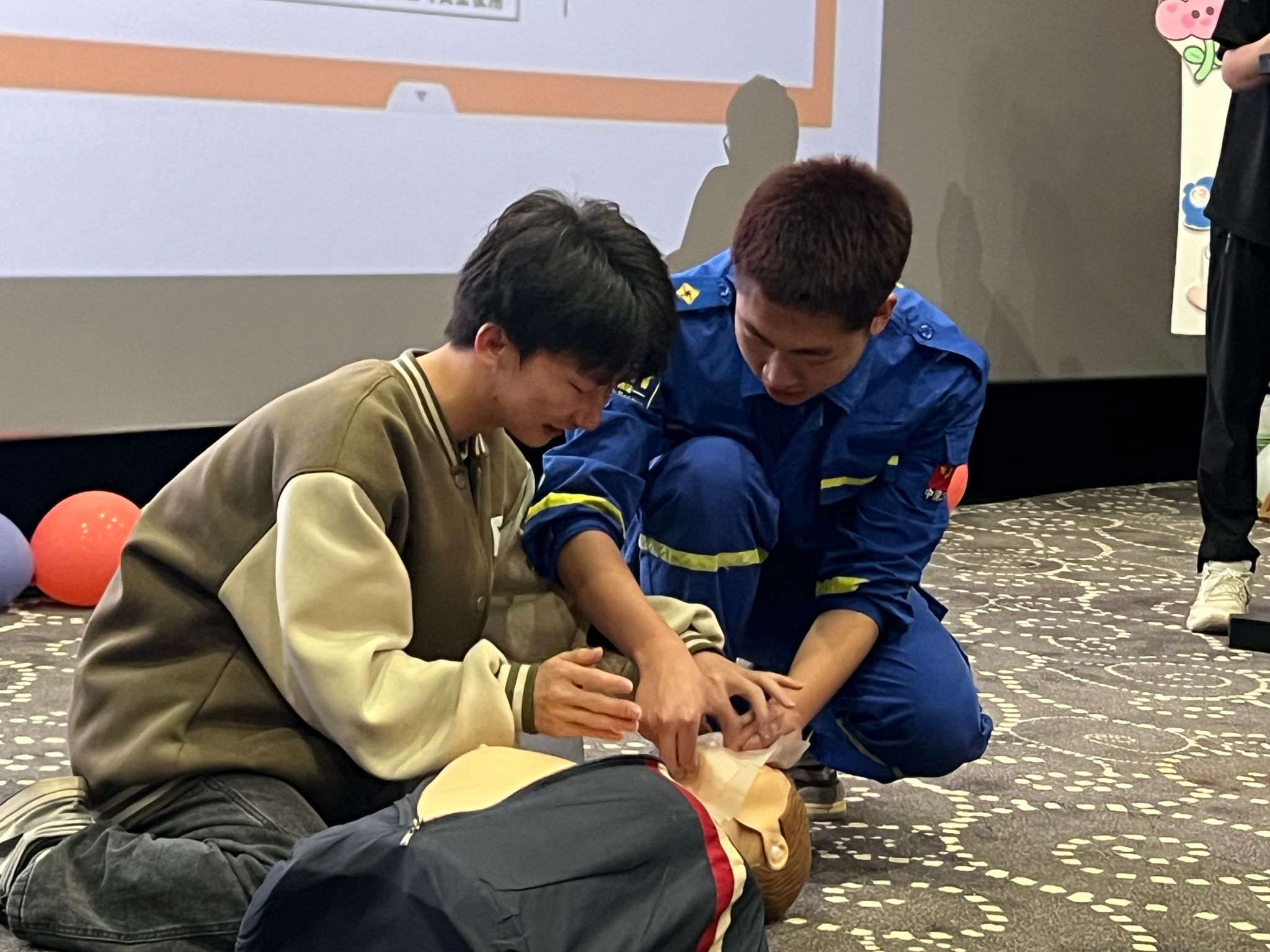 为了宣传应急救援知识,培养我校同学应急救援能力。4月16日,蓝天应急救助支队开展了心肺复苏的宣讲,在活动中教授同学们关于心肺复苏的相关知识与技能,让同学们在面对突状况时可以冷静有效的应对并给予他人及时并有效的救援。在亲自试验环节,同学们勇于尝试,为自己增加经验。