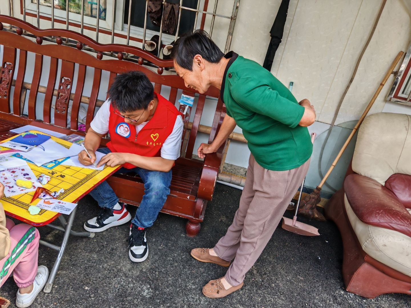 在这次活动中志愿者们满怀热情早早的就来到了社区中。随后,志愿者们进入到孩子家中将小孩子们带到小广场上一起活动,在这过程中志愿者们与孩子们亲切互动,一起画画、做游戏、讲故事。在绘画环节,孩子们用稚嫩的笔触描绘着心中的美好世界,志愿者们在一旁耐心指导,鼓励孩子们大胆创作;趣味游戏中,欢声笑语不断,孩子们与志愿者手拉手,共同完成一个又一个游戏挑战,现场气氛温馨而热烈。除此之外,志愿者们分工协作,迅速开启暖心陪伴。在手工制作区,孩子们与志愿者共同完成黏土造型、折纸作品,当一只只色彩斑斓的纸鹤、形态各异的黏土小动物诞生时,孩子们脸上洋溢着自豪的笑容;志愿者还收集了来自家长们的意见和建议从而让我们支援支队更好的开展往后的活动。