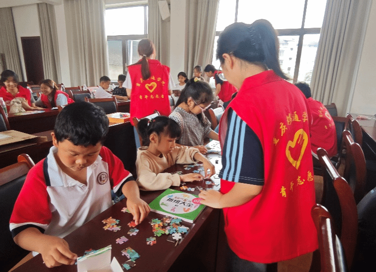 志愿者们还带领小朋友们进行了协作游戏。“快乐拼图”考验了他们的团队协作能力,小朋友们在游戏中互相帮助,团结协作,增进了彼此之间的友谊。志愿者与小朋友们的互动,不仅让小朋友们感受到了关爱,也让志愿者的内心充满了温暖。游戏中,孩子们笑声不断,温馨的氛围弥漫在整个活动现场。在欢声笑语中,志愿者们与小朋友们建立了深厚的情谊。他们耐心地教导孩子们玩游戏的规则,鼓励孩子们大胆尝试,并给予孩子们温暖的鼓励和肯定。孩子们也主动与志愿者们分享自己的生活,表达对志愿者们的喜爱和感激之情。这些温馨的互动,让整个活动充满了欢乐与温暖。每一个游戏都融入了温情与教育意义,孩子们在欢笑中收获了友谊与快乐,志愿者们也在互动中传递了温暖。