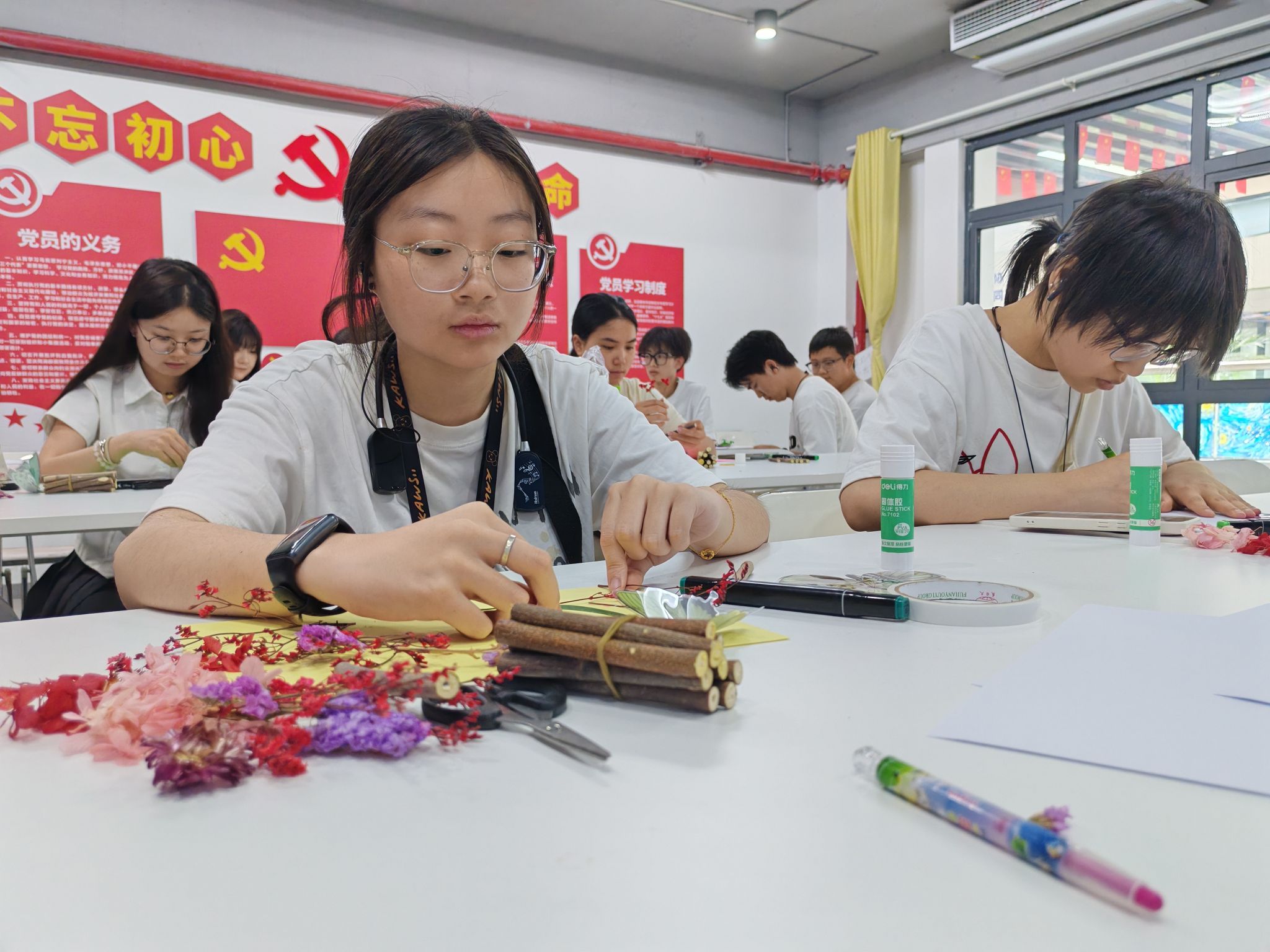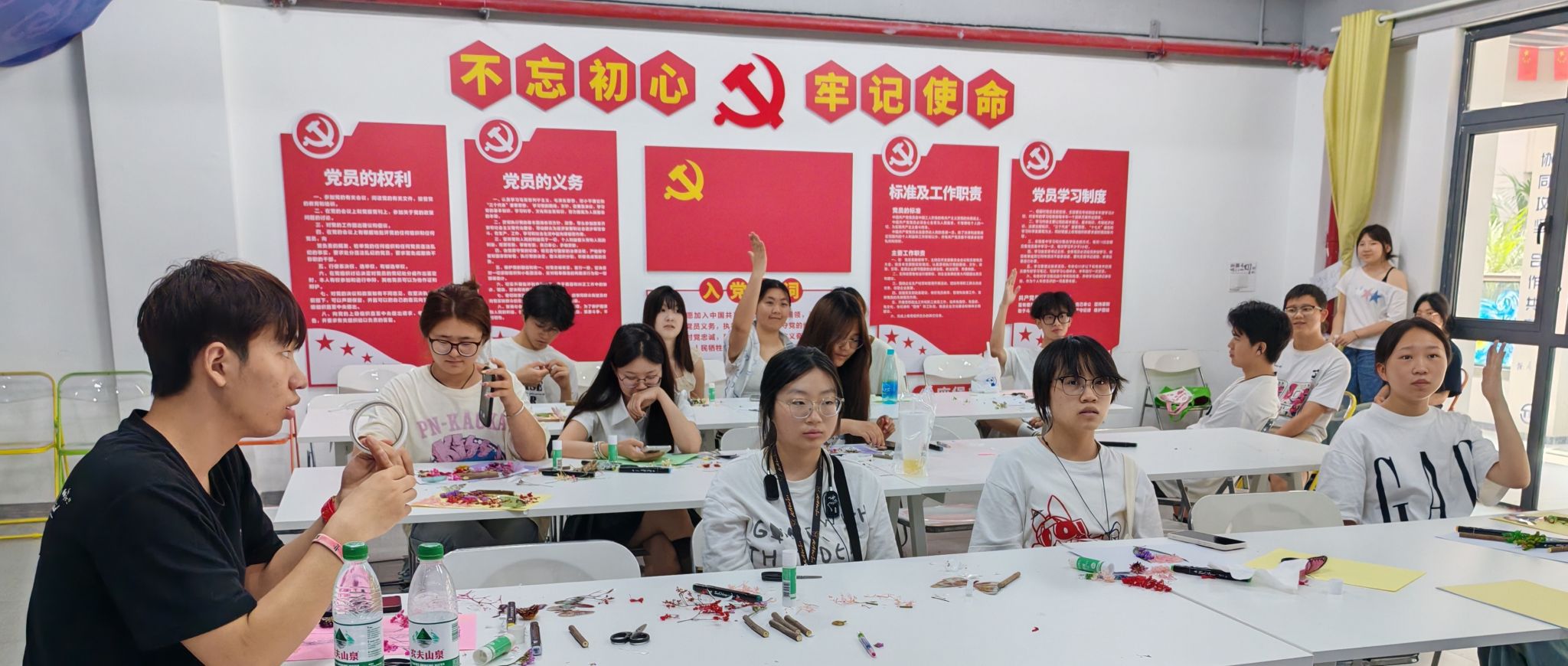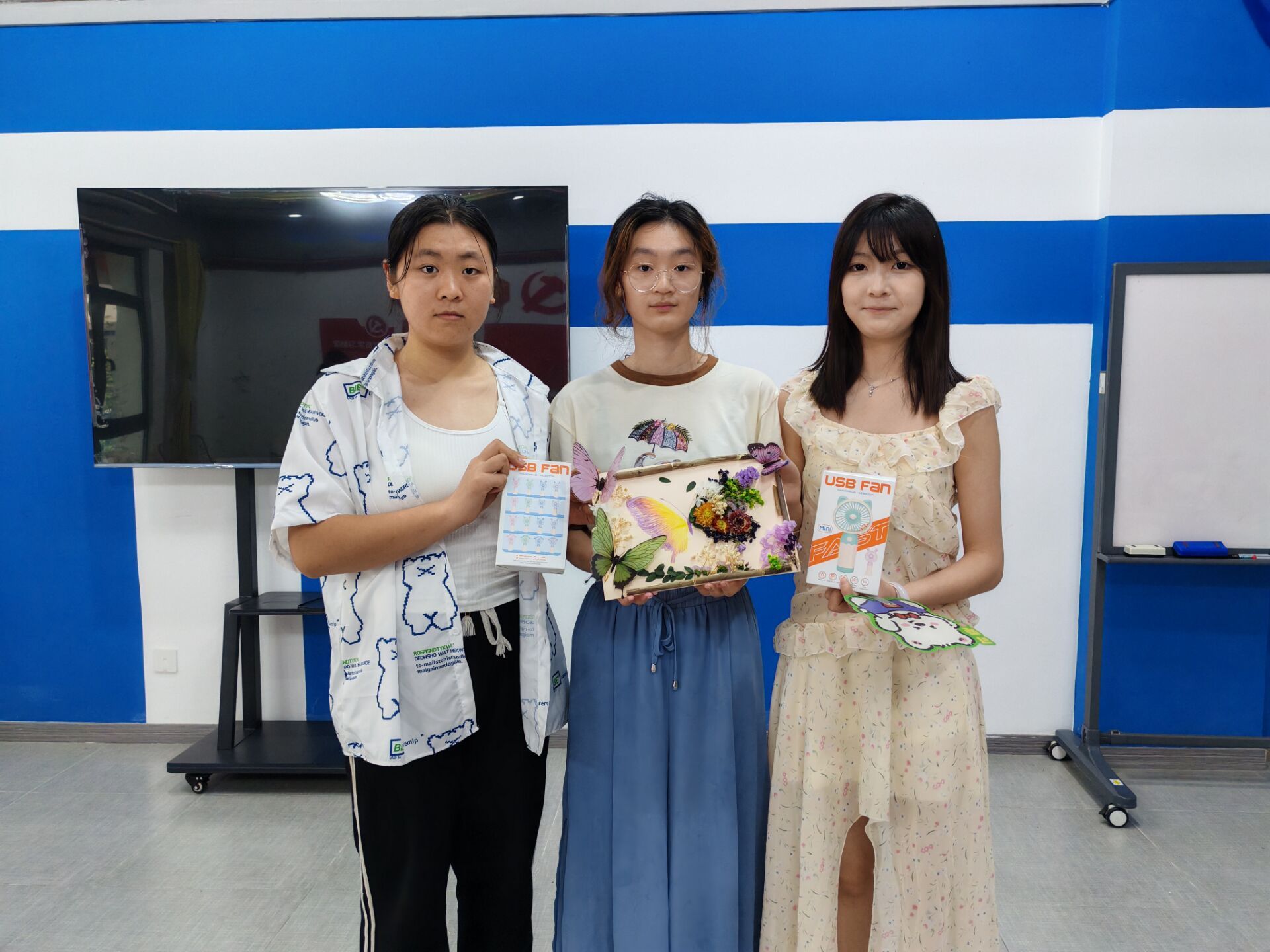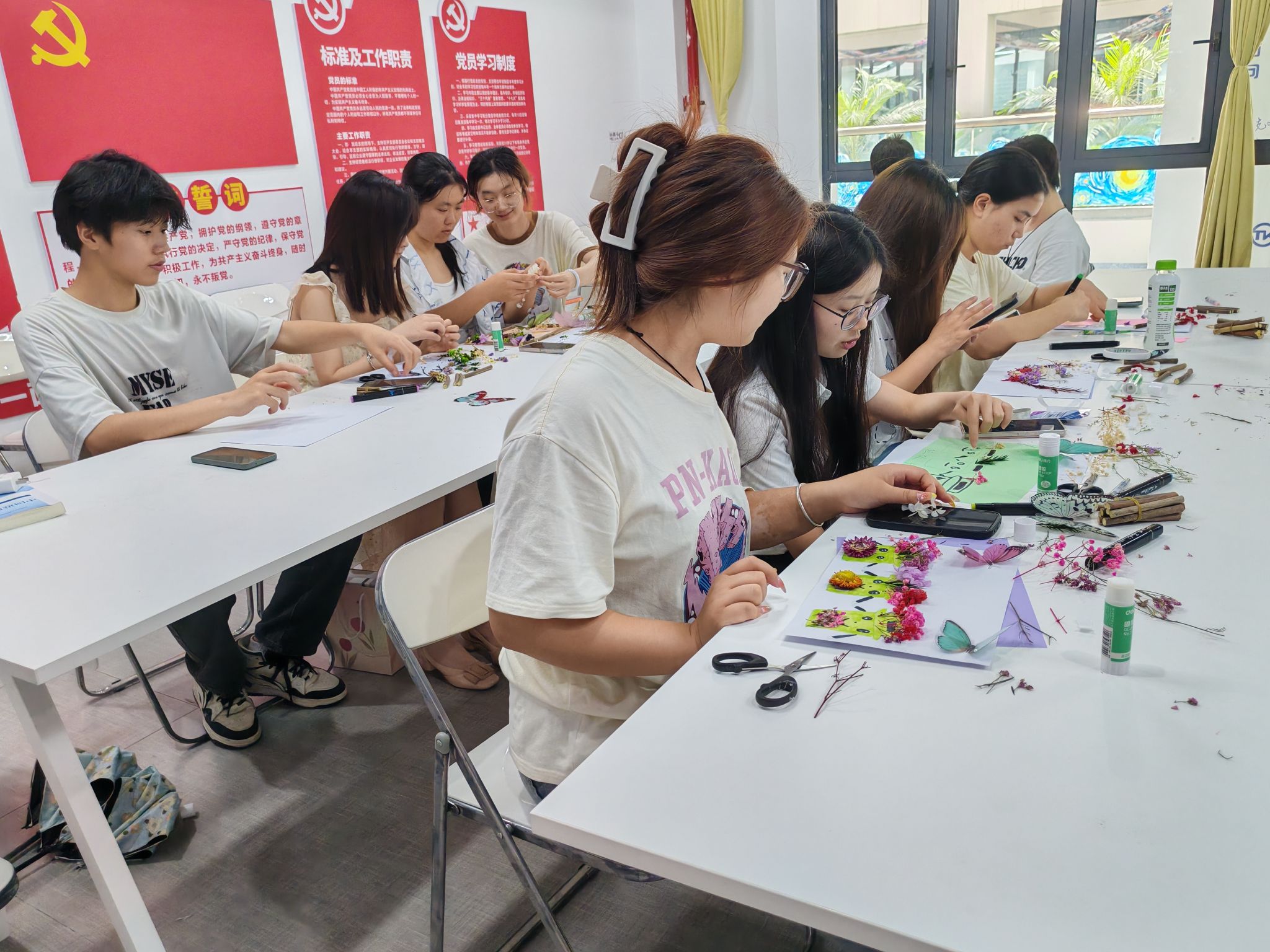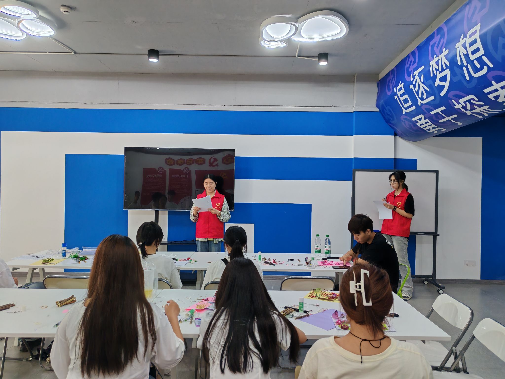 志愿者提前备齐干花、蝴蝶标本、彩色马克笔、胶水、树枝、彩纸等材料。活动开始,同学们充分发挥想象力,将这些材料巧妙组合,制作出一幅幅精美的树枝画。制作过程中,志愿者全程耐心协助,为大家解决构图、粘贴等问题。制作完成后,主办方从中评选出优秀作品,并为创作者送上卡通环保手摇扇作为奖励。这不仅让参与者直观感受到“垃圾是放错位置的资源”,更培养了“取用有度、物尽其用”的环保习惯。