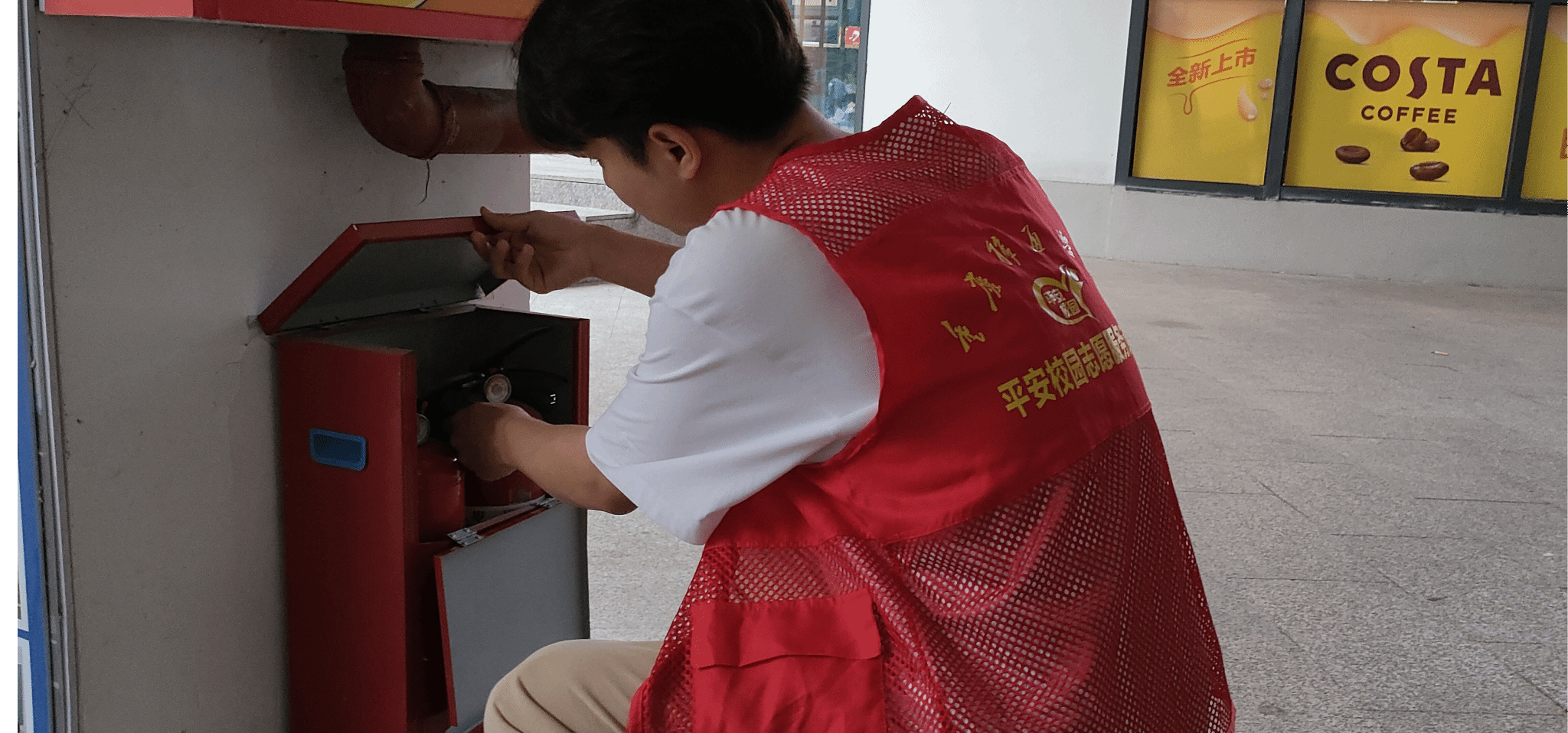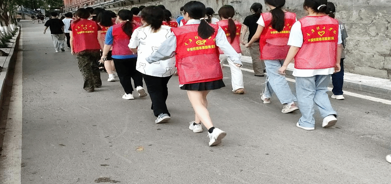 志愿者们身穿醒目的红色马甲,整齐地穿梭在校园的各个角落。他们认真检查消防设施,确保其在紧急时刻能够正常使用;仔细排查疏散通道,保障在危机发生时能有安全的逃生路线。他们还在校园道路上巡逻,关注着校园内的每一个细节,预防各类安全事故的发生。