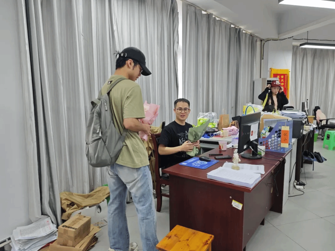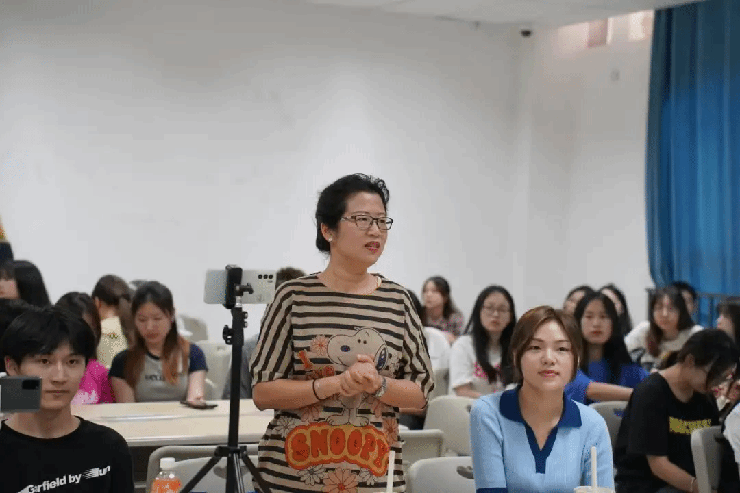 9月10日下午,艺术传媒学院504教室暖意融融,提前半月征集学生心意:镜头前新生诉说“您的第一堂课让我爱上专业”,便签上毕业生写下“办公室灯光照亮考研路”。百余师生以创意与真心为园丁们献上惊喜,将知识殿堂化作感恩花园。大屏幕流转的滚烫告白,让严谨的老师们眼眶湿润,低声感叹“原来他们都记得”,惊喜与感动悄然流淌。学生代表手捧定制礼盒上前,书签雕刻着姓名与学科符号,纪念册里夹着三年课堂剪影。李老师轻抚书签突然拥抱学生:“这比任何奖状都珍贵。”