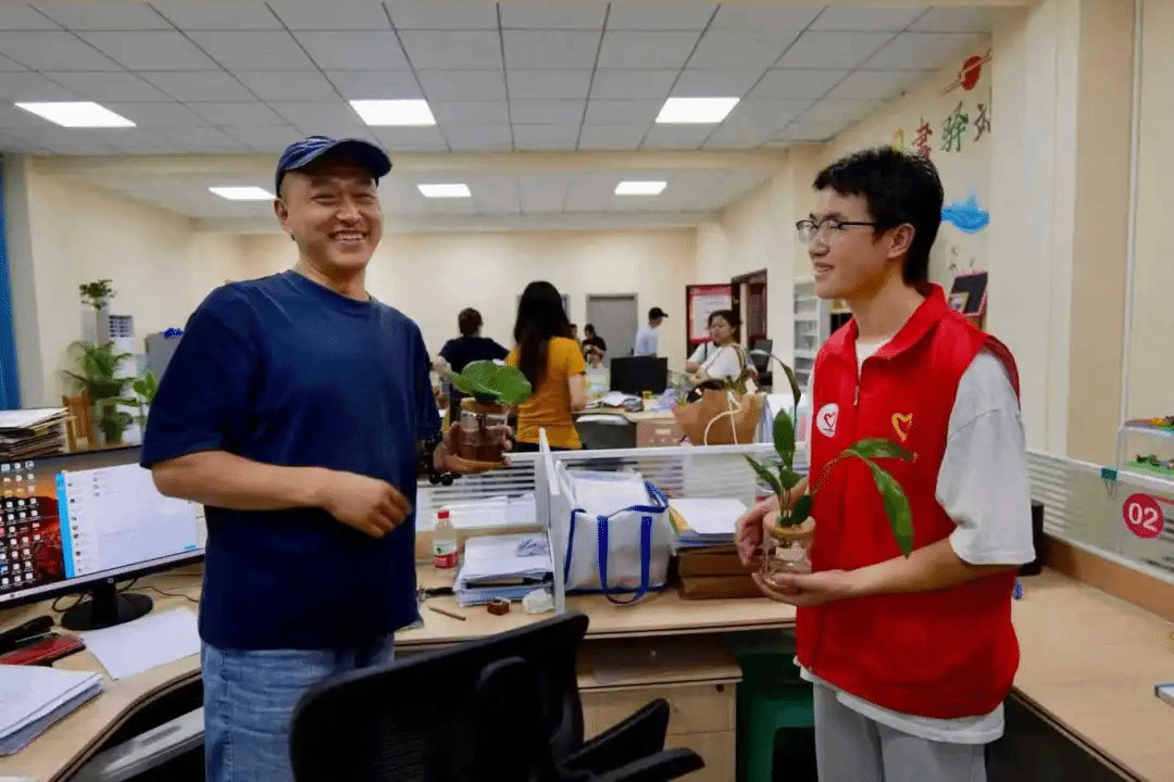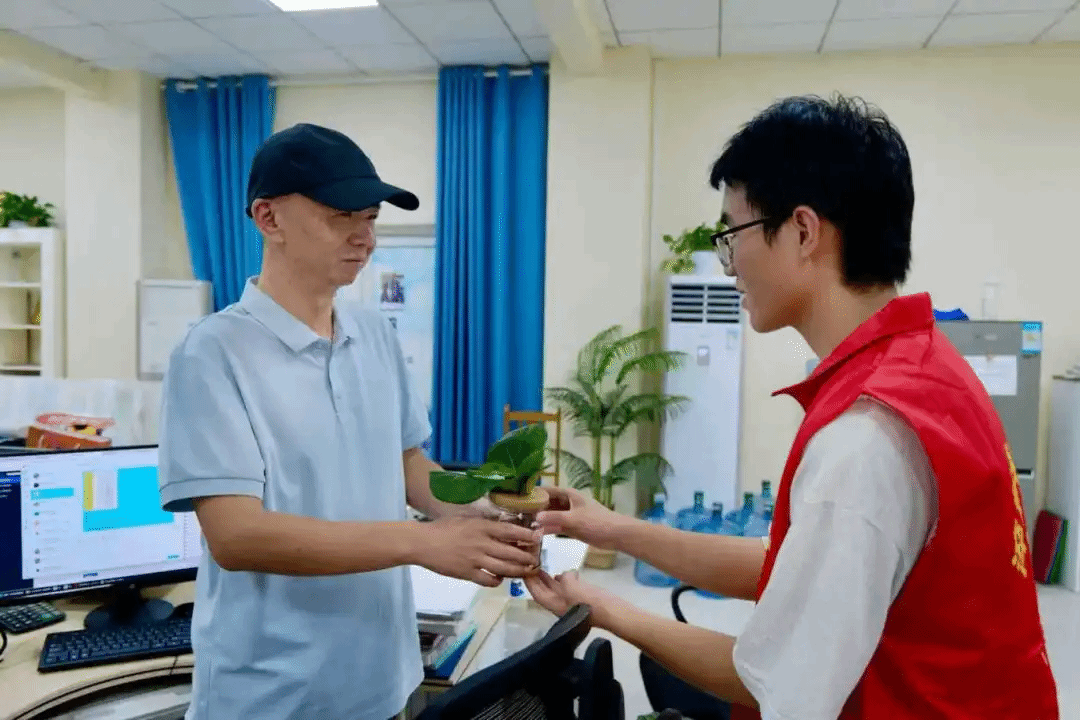 学生化身“绿植使者”,趁课间悄悄潜入办公室。选花盆时,学生兴奋推荐:“这个青瓷盆配绿萝超有气质!”王老师笑着点头:“你们的审美比我的教案还严谨。”放土壤环节,调皮男生抓把营养土轻撒老师掌心:“这是‘感恩基肥’!”引来一阵欢笑。栽种时李老师俯身指导:“根茎要舒展,像你们的梦想一样不能蜷曲。”最动人的莫过于装饰环节,张同学用彩石在铺面摆出“师恩如松”,陈老师突然拥抱学生:“这比任何论文致谢都珍贵。”32盆缀有师生姓名牌的绿植整齐排列,成为会生长的感恩纪念。手写卡片暗藏惊喜:“您总说‘画图要精准’,但您批改作业时颤抖的笔尖,我们都懂是心疼。”