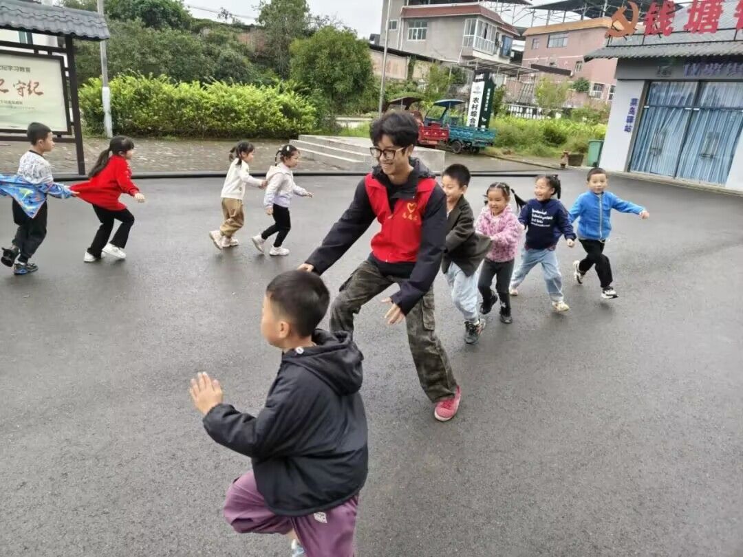 歌声落罢,户外 “老鹰捉小鸡” 游戏拉开帷幕。志愿者分别扮演 “老鹰” 与 “鸡妈妈”,小朋友组成 “小鸡队伍”,在开阔场地奔跑躲闪,现场欢声笑语不断。游戏不仅让孩子们释放活力、锻炼肢体协调性与团队协作力,更拉近了彼此距离。