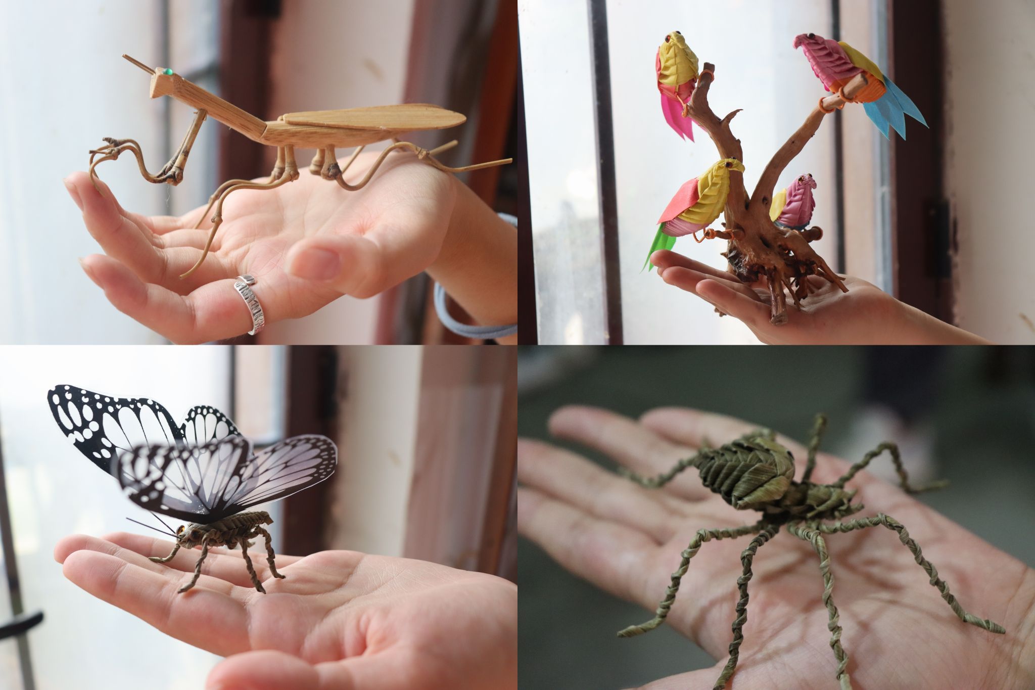 从简单的棕叶选材,到复杂的编织手法,王师傅耐心地讲解着每一个细节。在他的手中,一片片普通的棕榈叶仿佛被赋予了生命,化作了精美的动物、花卉和各种奇妙的造型。队员们被这神奇的技艺深深吸引,眼中充满了对知识的渴望和对传统文化的热爱。