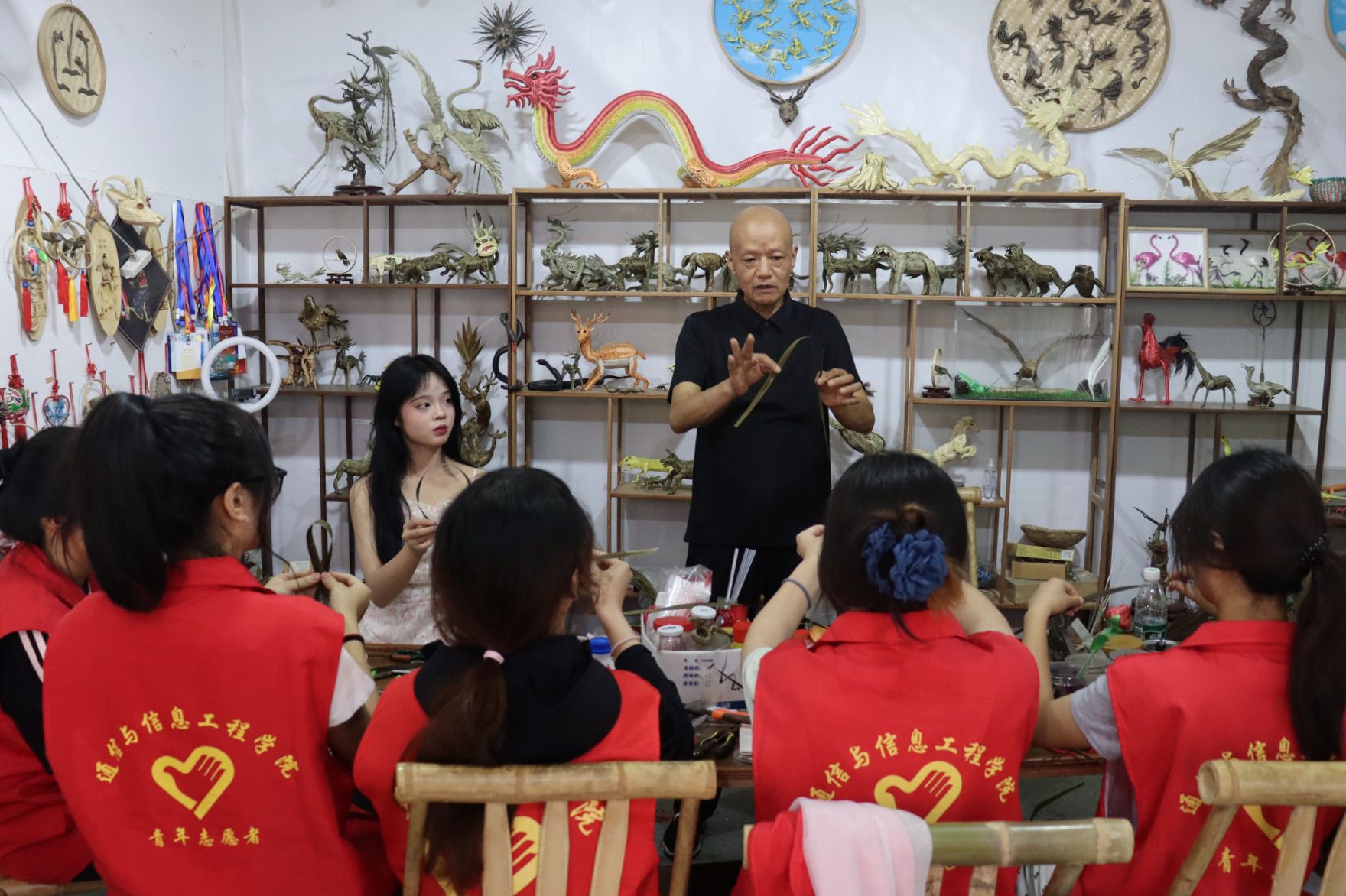 队员们沿着老街的石板路前行,两旁的古建筑仿佛在诉说着过去的故事。在老街的深处,志愿者们终于找到了棕编艺术的传承之所,一扇木门后,隐藏着一个充满魅力的棕编世界。