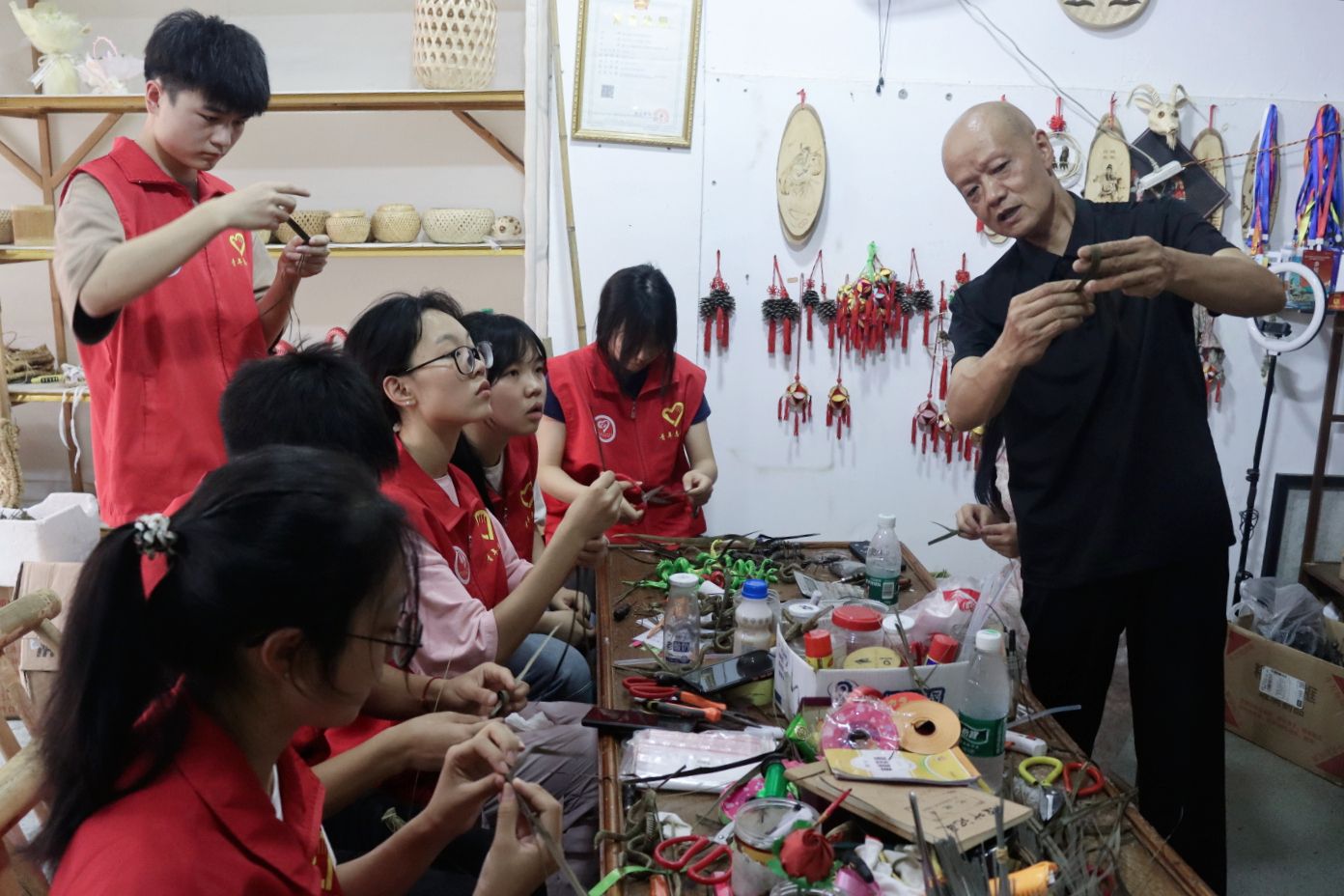 在王师傅讲解过后,便亲手指导志愿者们进行成品制作,志愿者们纷纷拿起棕榈叶,开始了自己的棕编之旅。起初,他们的动作略显生疏,但在不断的尝试和努力下,逐渐掌握了技巧。