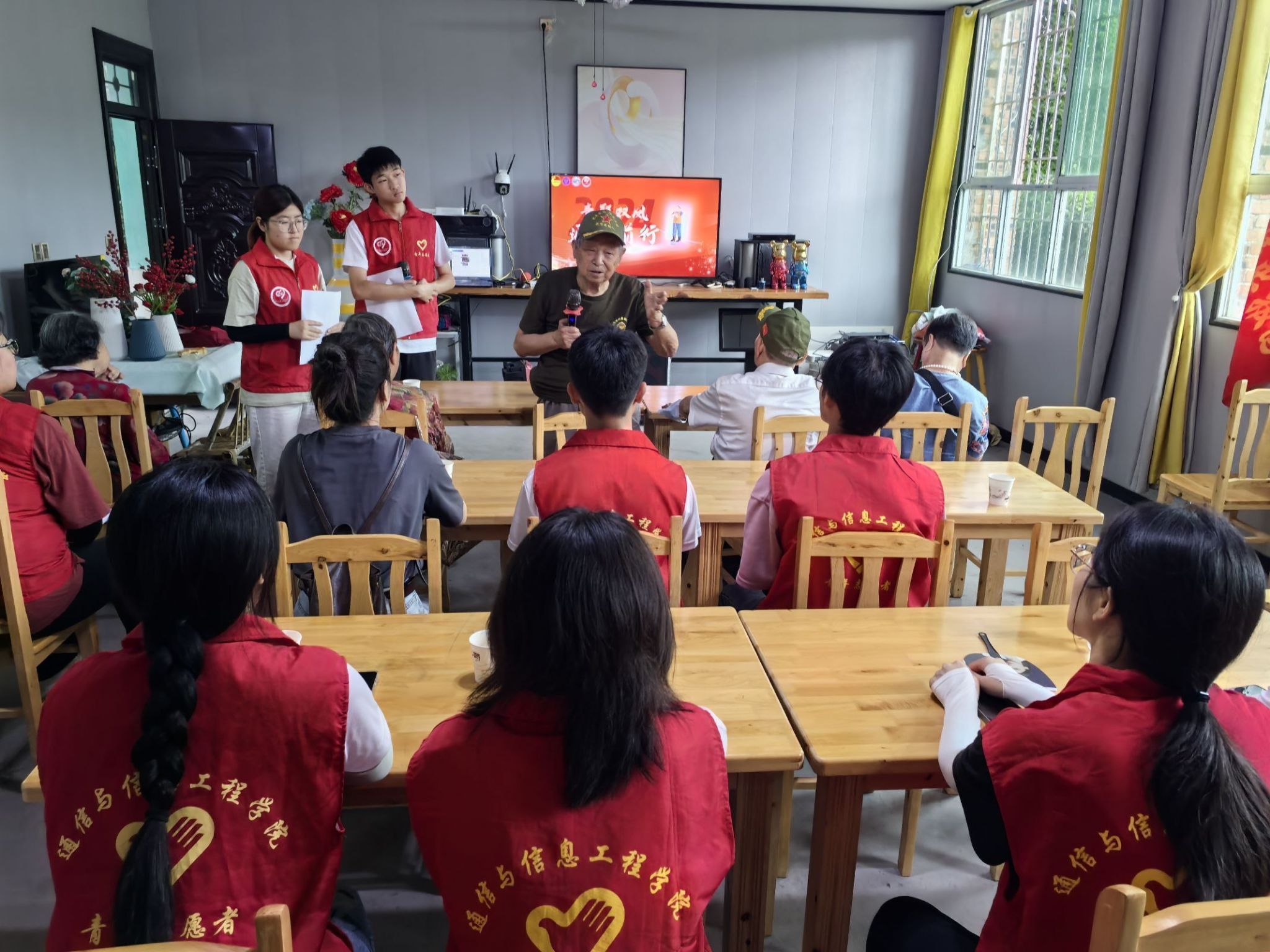 为进一步传承老一辈革命精神,引领新时代青年在乡村振兴实践中弘扬红色文化,以红色精神铸魂乡村振兴,推动乡村振兴迈向新的征程。2024年7月7日,重庆移通学院通信与信息工程学院“青聚双凤 通力前行”乡村振兴促进团于诚湘康养院会议室召开“学习红色故事 共建振兴新局面”主题分享会,旨在将这段不朽的历史与新时代乡村振兴紧密结合,为乡村发展注入全新活力。此次会议特邀请:段贤能、汪重民、余中华三位原抗美援朝战士进行分享。