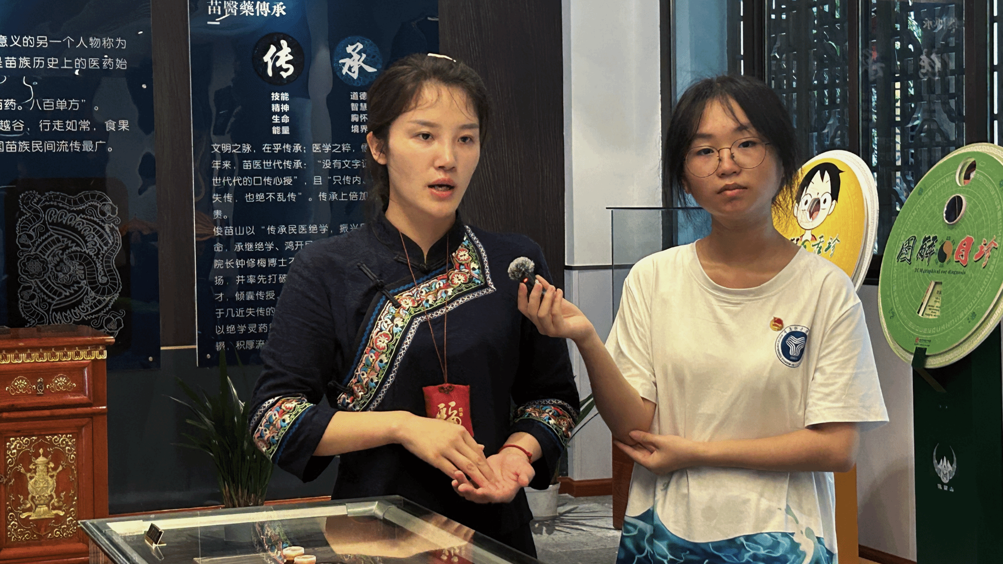 苗药,作为苗族文化的瑰宝,其起源可追朔至远古时期。苗族民间广泛流传着“千年苗医,万年苗药”的歌谣。团队成员围绕“青年传承”主题,携传承之志,踏入彭水苗药研究院,共同探索这场奇妙之旅。