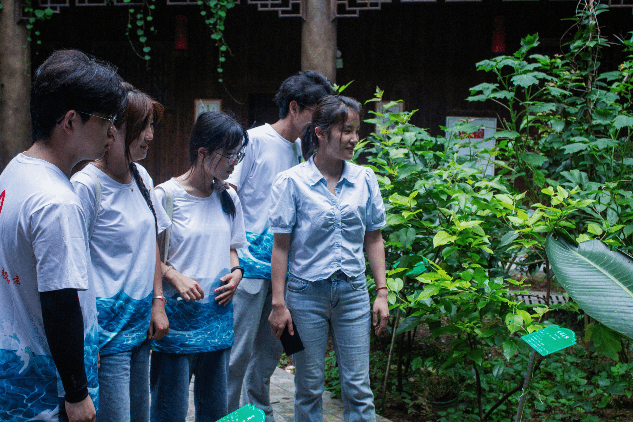 走近百草园,感悟苗药灵韵。踏足药园的第一刻,映入眼帘便是一片绿意盎然的天地,通过传承人的讲解,从“千年老鼠屎”的天葵到水龙骨科植物骨碎补,各种珍贵苗药尽收眼底。“人之寿,不过百年,而苗药之光,源远流长。”团队成员亲眼见证自然界的奇妙造化,深刻感受到苗族医药文化那跨越千年的智慧与韵味。