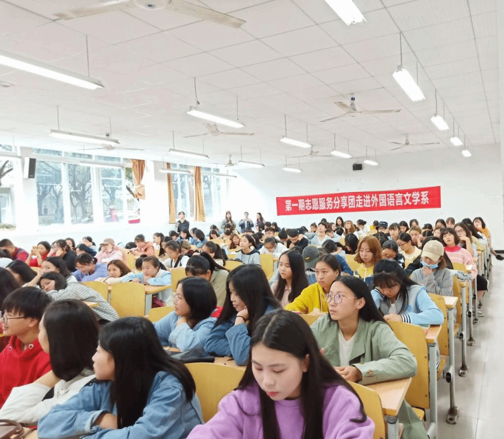 席慕容说:青春是一本太仓促的书。九月,新生们踏入了大学的征程,这一路,必定有混浊不清的泥泞,必定有巍峨高耸的山川,但我们却无所畏惧,因为心有猛虎,便能细嗅蔷薇。在这充满希望的九月,我们开展了外语系大一新生志愿服务分享活动,为大家打开了一扇光明的窗户。