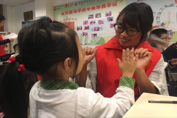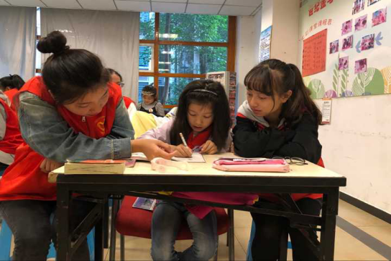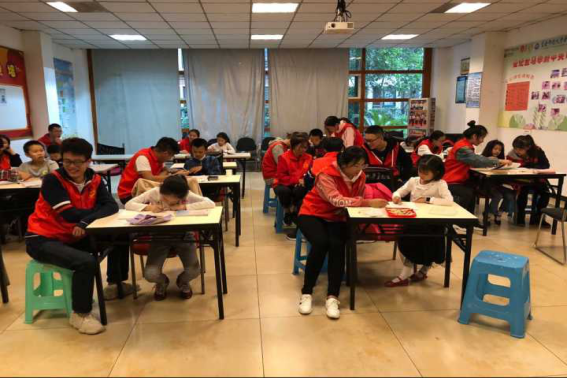 我们对十年前的自己毫无印象,对十年后的自己也毫无概念。假设与构想都无计可施,宛如用拳头打成的结,套不住时光的尾巴。日子相距久远,却又近在身边。志愿者与小朋友亲近的每一个瞬间都印在脑海里。辅导小朋友写作业,完成作业后小朋友微笑的脸庞像电影一样在一幕幕的闪现。陪同小朋友一起玩耍,与小朋友小打小闹像一本记忆画册一样一笔笔描绘着她们的快乐时光。