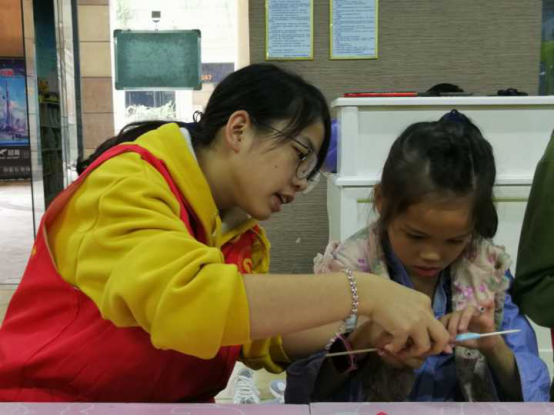 11月4日,学府中央“四点半课堂”志愿服务专项支队的志愿者和手工社的小伙伴齐聚在缤果城少儿公益图书馆,与“四点半课堂”的小朋友们一起度过一个多彩的下午,一起追寻那心中的梦想,让它在小朋友的手中开出美丽的七彩花朵。